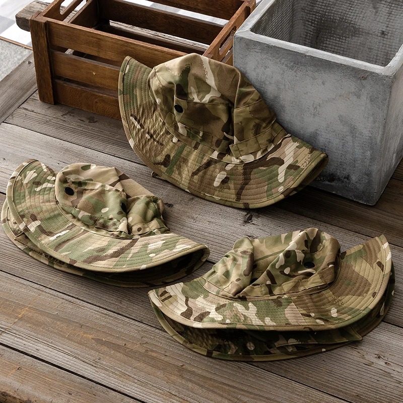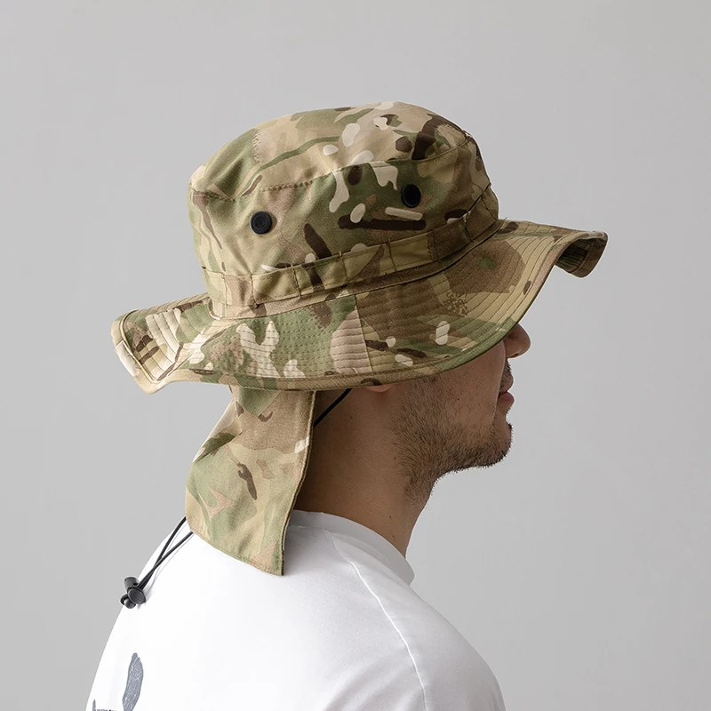 Gorra de ala redonda con sombrilla de sombrero Benny de camuflaje al aire libre con cortina trasera
