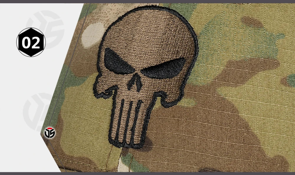 6.Bordado de calaveras y camuflaje colorblock impreso, adecuado para tácticas, caza y etc.