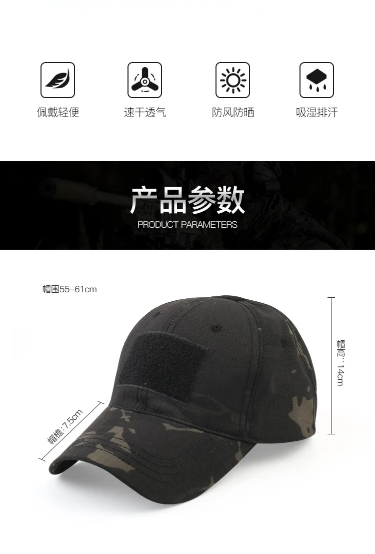 Gorra de béisbol con ventilador táctico para hombre, adiestramiento al aire libre, cp, visera ajustable para senderismo, gorra con lengua de pato