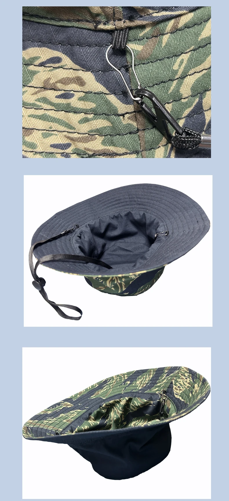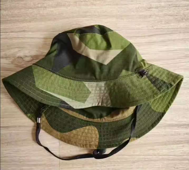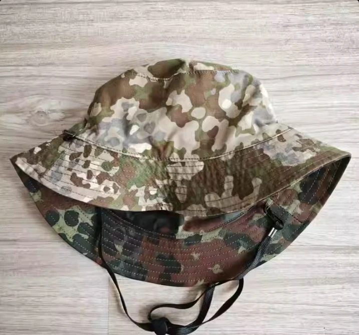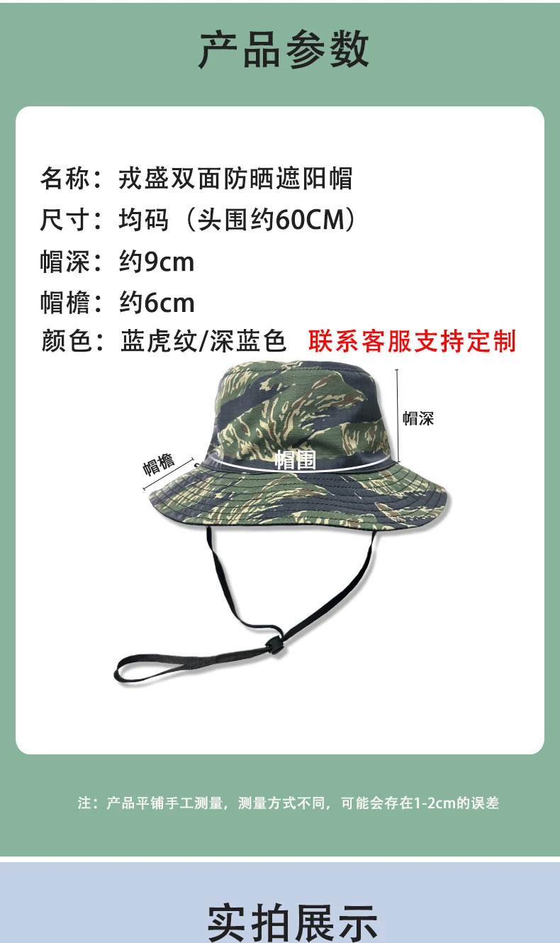 Gorra de Sol de camuflaje para exteriores, sombrero de pescador de verano, rayas de tigre azul, doble cara, punto alemán, camuflaje de nieve