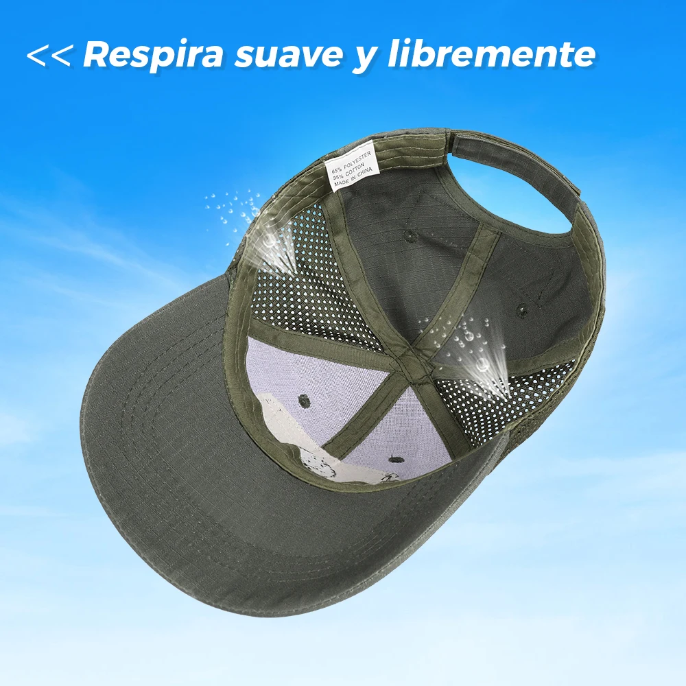Ambos lados del sombrero están diseñados con tela de malla transpirable, puede acelerar la evaporación del sudor y absorber el sudor rápidamente, mantener su cabeza seca, fresca y no pegajosa.