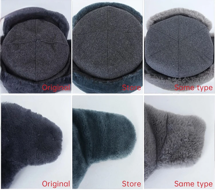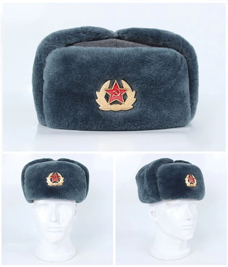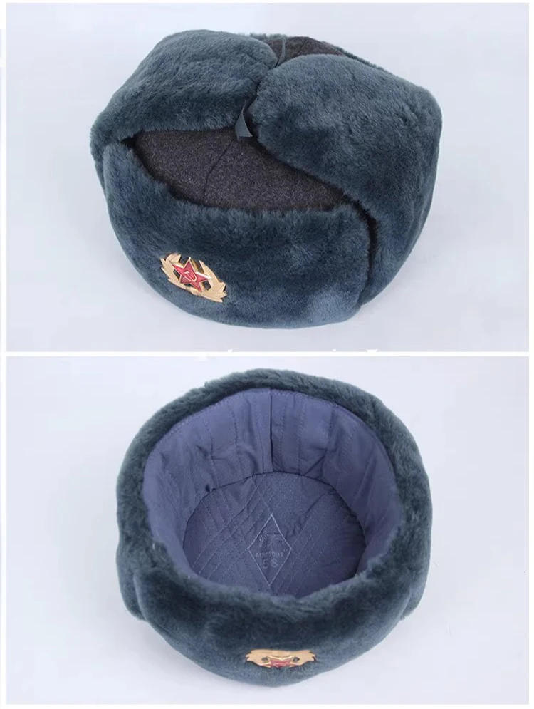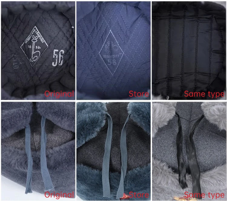 Esta réplica de sombrero de invierno gris está hecha de piel sintética similar a la oveja de alta calidad, que es similar en apariencia y textura a las versiones de piel sintética de los sombreros de invierno grises equipados por la Unión Soviética desde pedidos M88 hasta 91M desde finales de la década de 1980. y el material es superior al original, haciéndolo más suave y confortable. El lado izquierdo de la imagen muestra el sombrero de invierno gris de nuestra tienda y el lado derecho muestra el sombrero de invierno gris original de 91M.