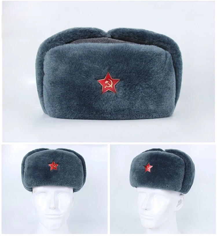 Gorro de algodón Ushaka ruso suave de aire táctico reproducción M69 sombrero cálido para caza al aire libre sombrero de invierno gris sombrero de Lei Feng desplumado