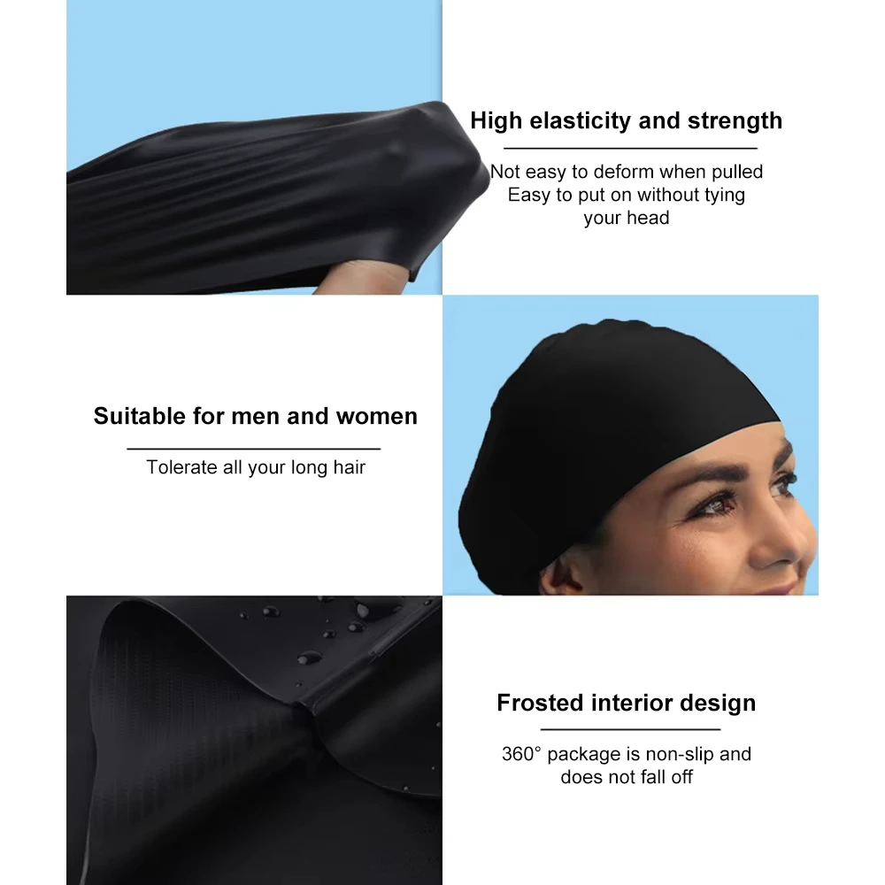 Gorro de natación extragrande de silicona para cabello largo, resistente al agua, para mujer y hombre