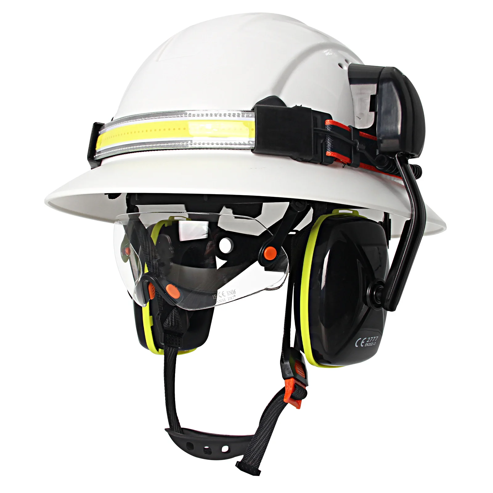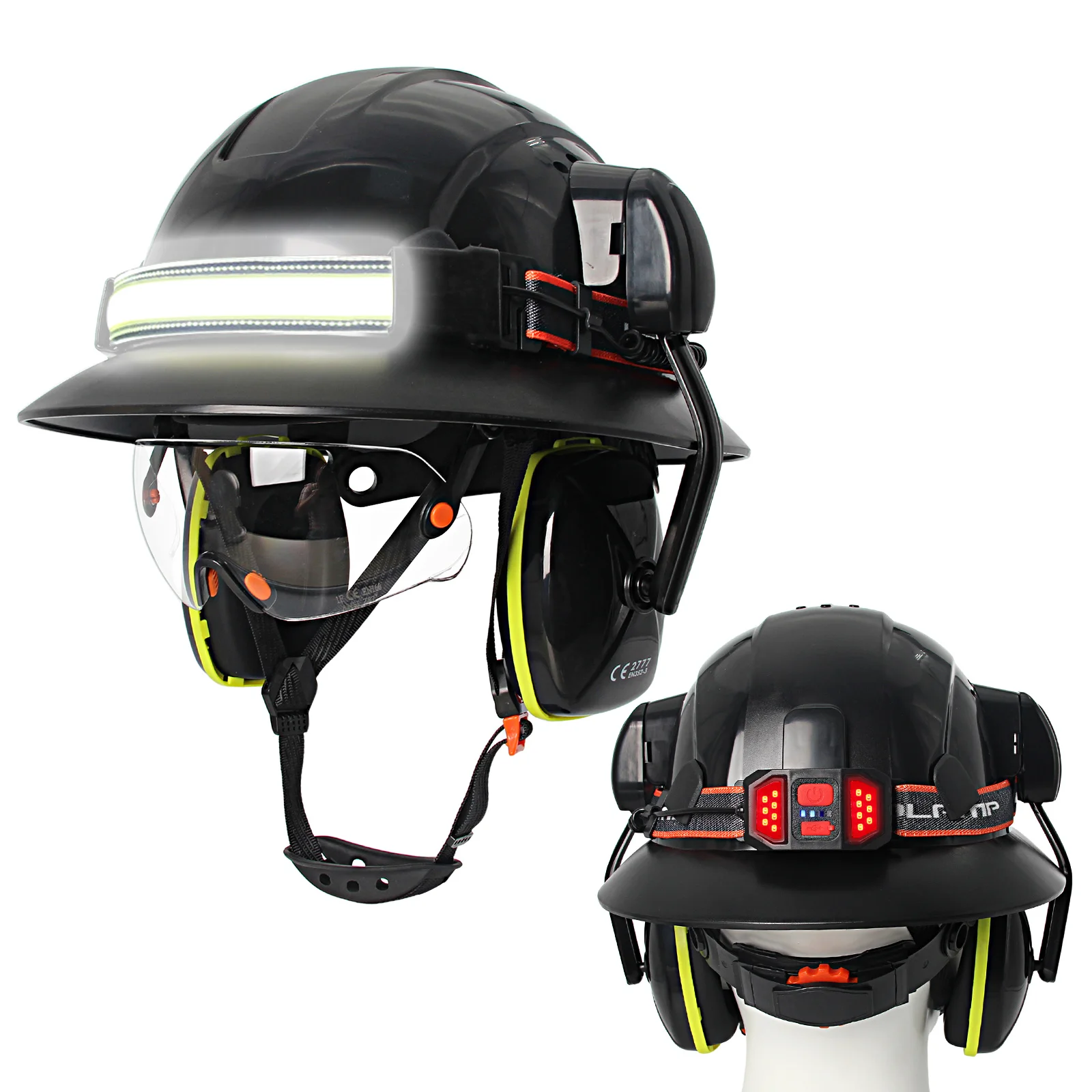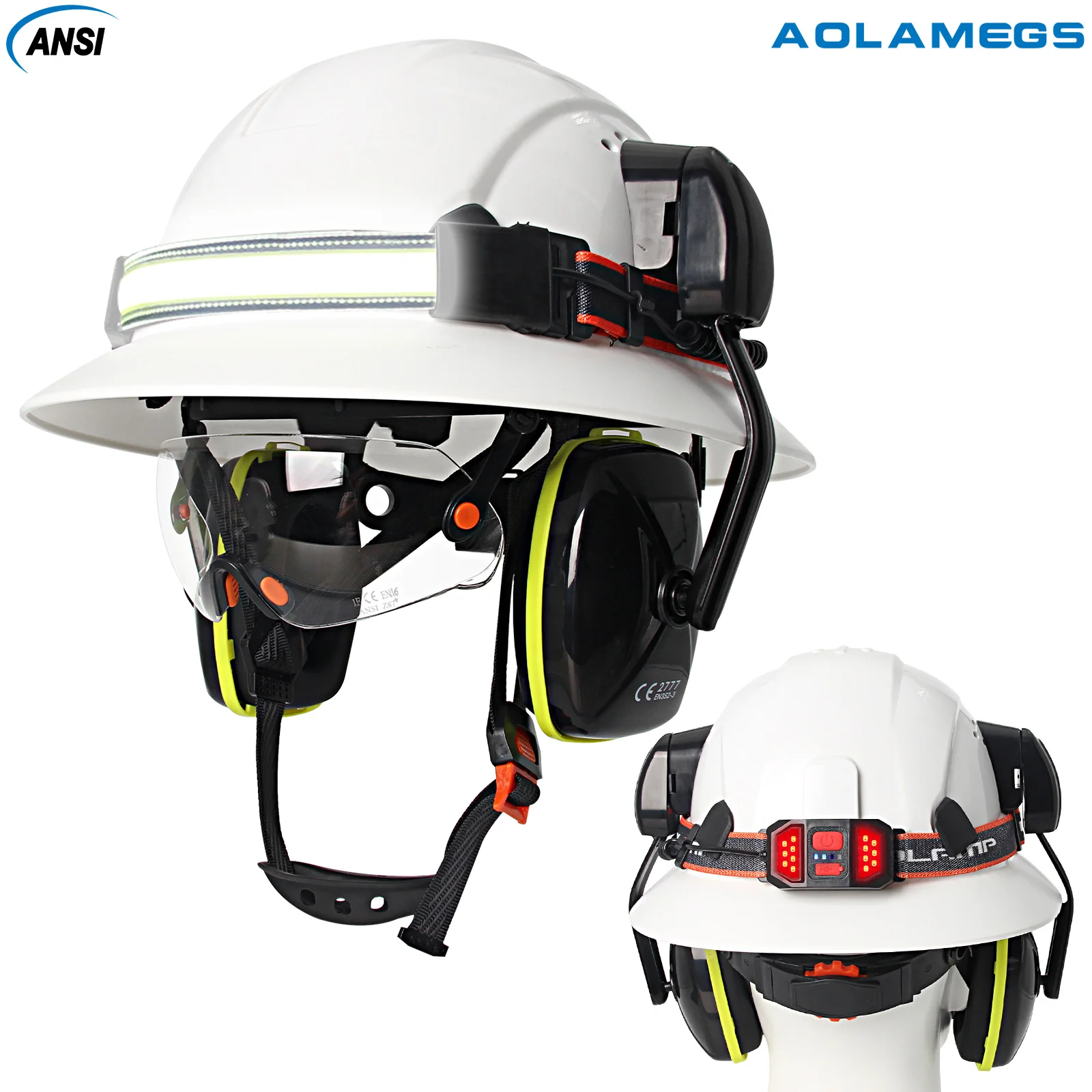 Gorro de seguridad de ala completa CE con lámpara para la cabeza, gafas, orejeras, casco duro de construcción transpirable, casco de trabajo Industrial ANSI