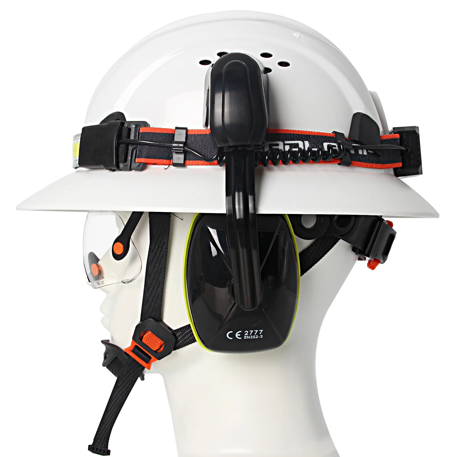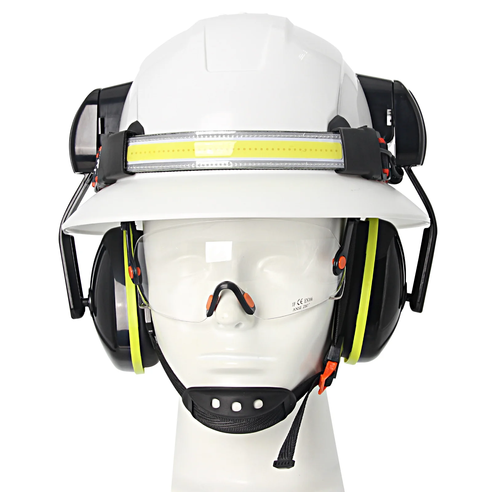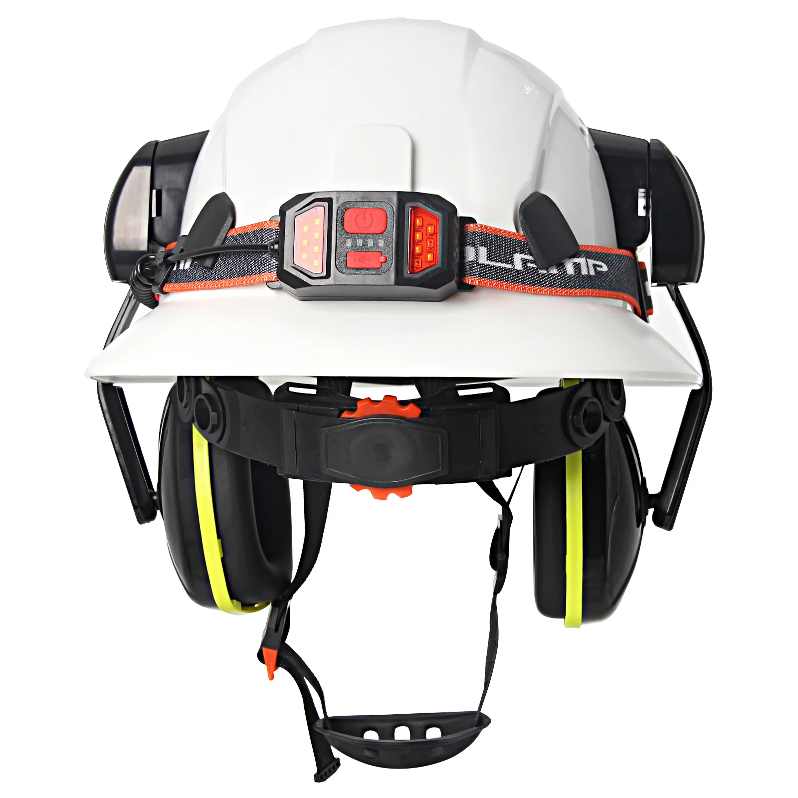 Gorro de seguridad de ala completa CE con lámpara para la cabeza, gafas, orejeras, casco duro de construcción transpirable, casco de trabajo Industrial ANSI