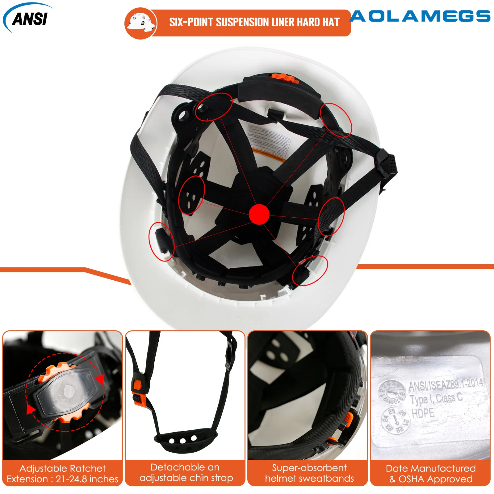 Especificación: El casco de seguridad tiene un ala completa, que tiene un buen efecto antigolpes y de protección solar en el proceso de uso real, y es más eficaz contra la lluvia en días lluviosos. Este producto ha pasado la prueba estándar de casco de seguridad CE y ANSI Z89.1. Material: HDPE de alta calidad Forro: forro de tela Sombrero adecuado para el tamaño de la cabeza: 52-63 cm Correa de gorra:Correa elástica cómoda para la barbilla Forro: tela de 6 puntos Entorno de uso: construcción/fábrica/aceite/minería/vida diaria/trabajo para llevar