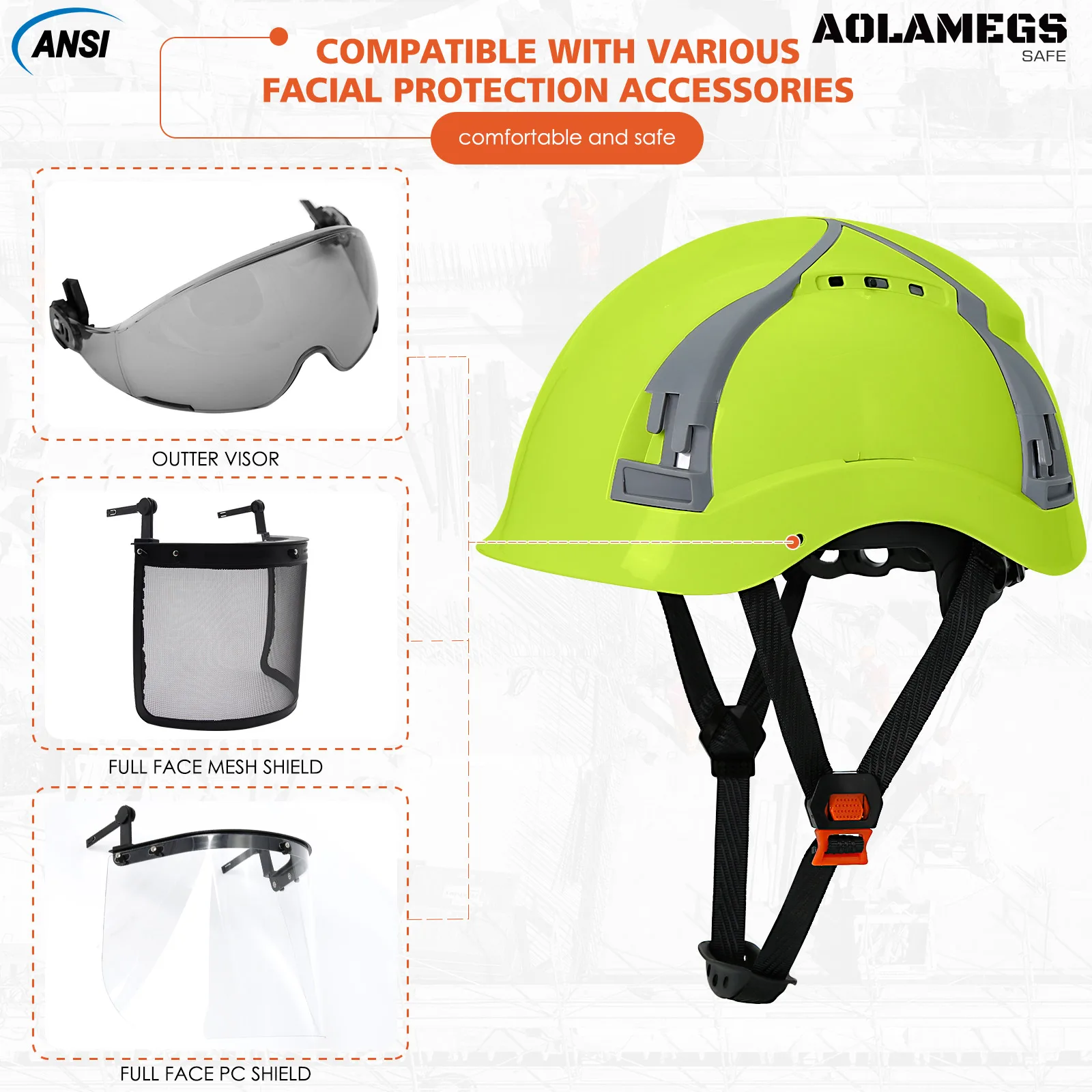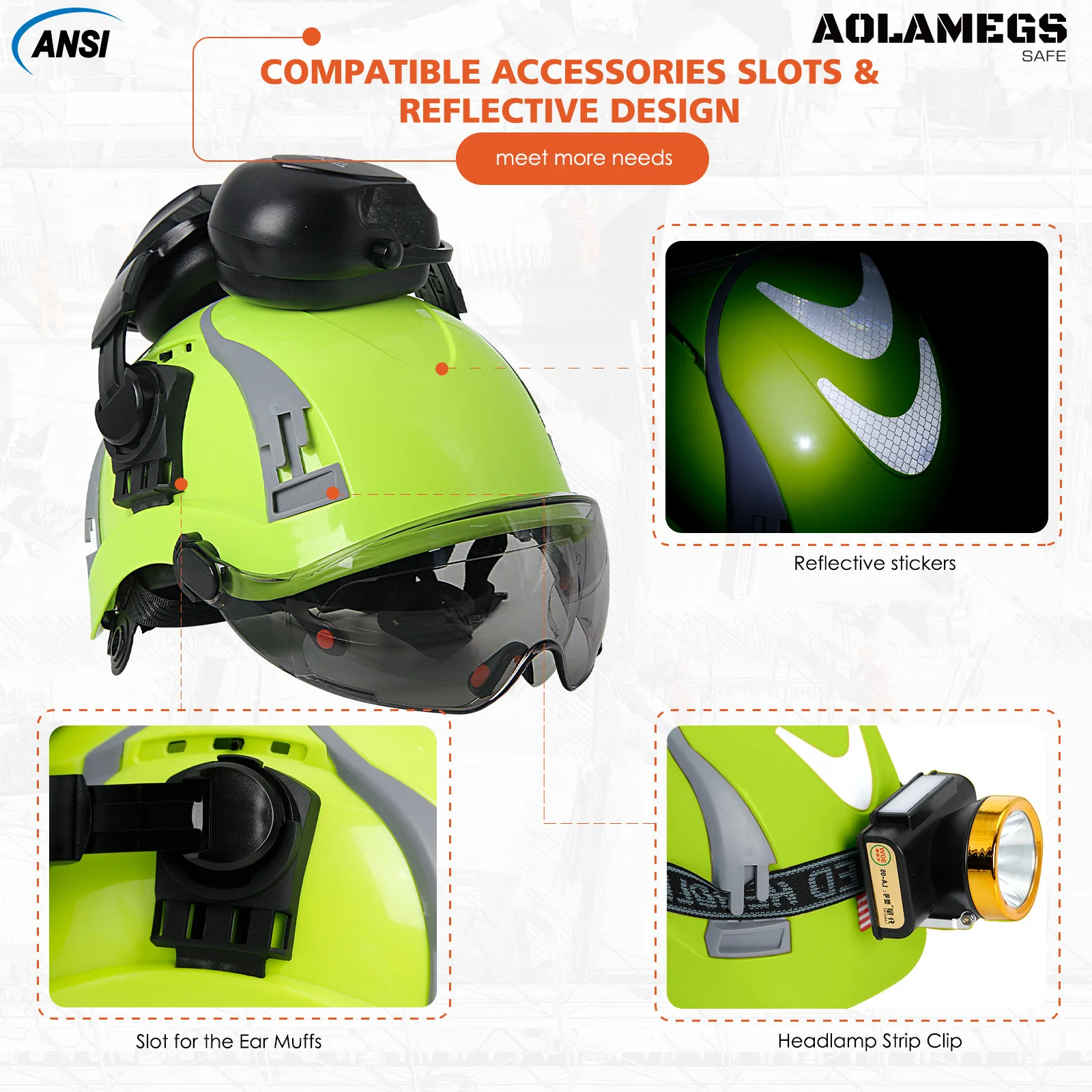 El diseño especial de ranuras laterales garantiza que el casco de seguridad instale fácilmente protección auditiva, protector facial y faro mediante bricolaje, lo que permite más protección en la cultura, minería, escalada y conducción.