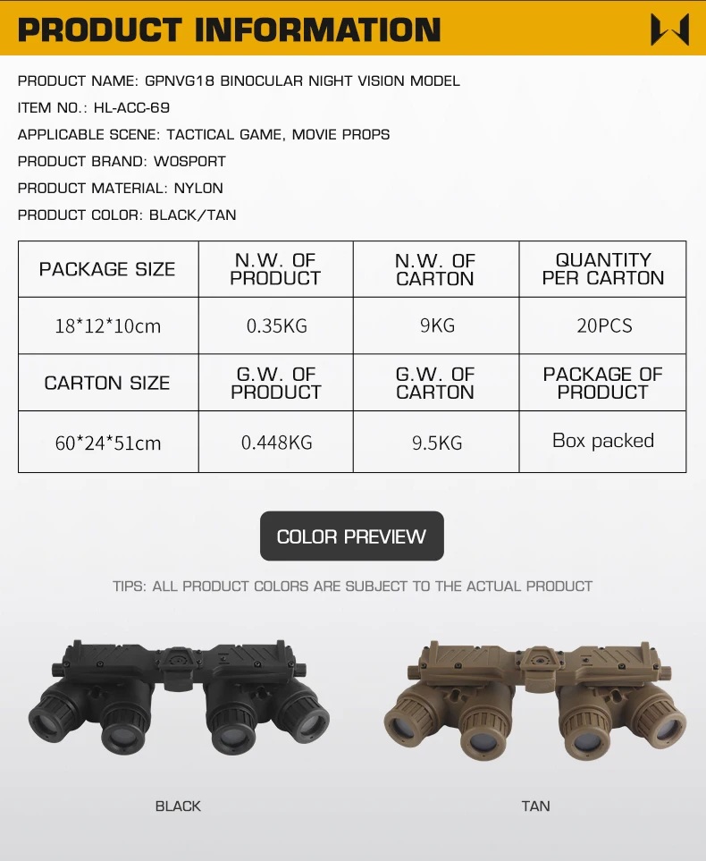 Nombre del producto: modelo de visión nocturna GPNVG18 de 4 ojos