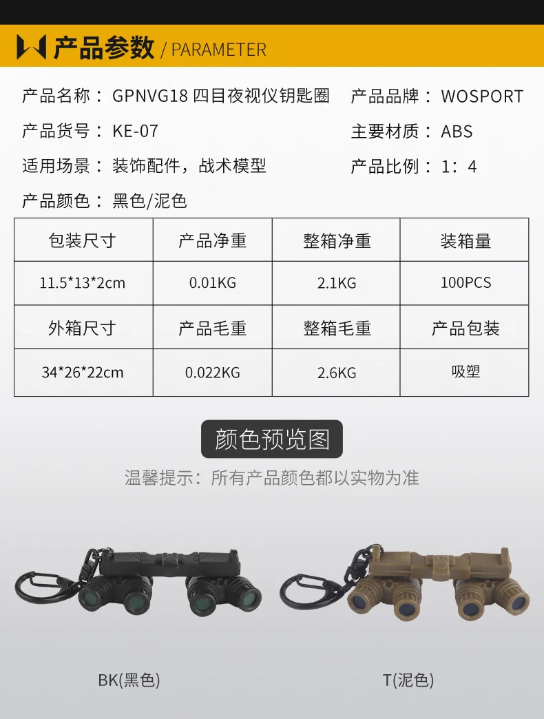 GPNVG18 Gafas de visión nocturna de cuatro ojos Modelo de simulación táctica Llavero de decoración favorita