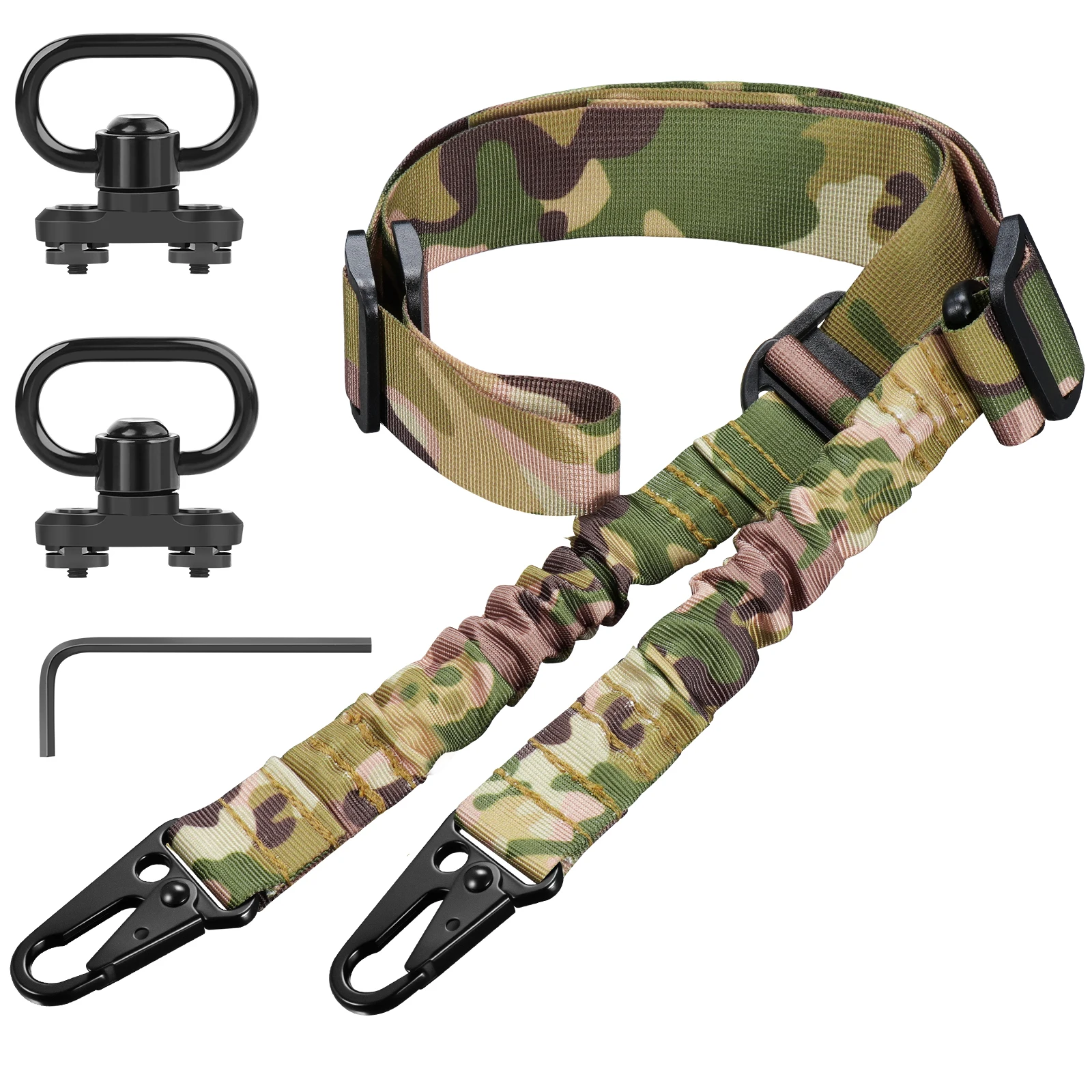 Gran descuento Eslinga para Rifle de 2 puntos con 2 soportes Mlok QD, longitud de la correa ajustable con llave elástica para actividades al aire libre Hun