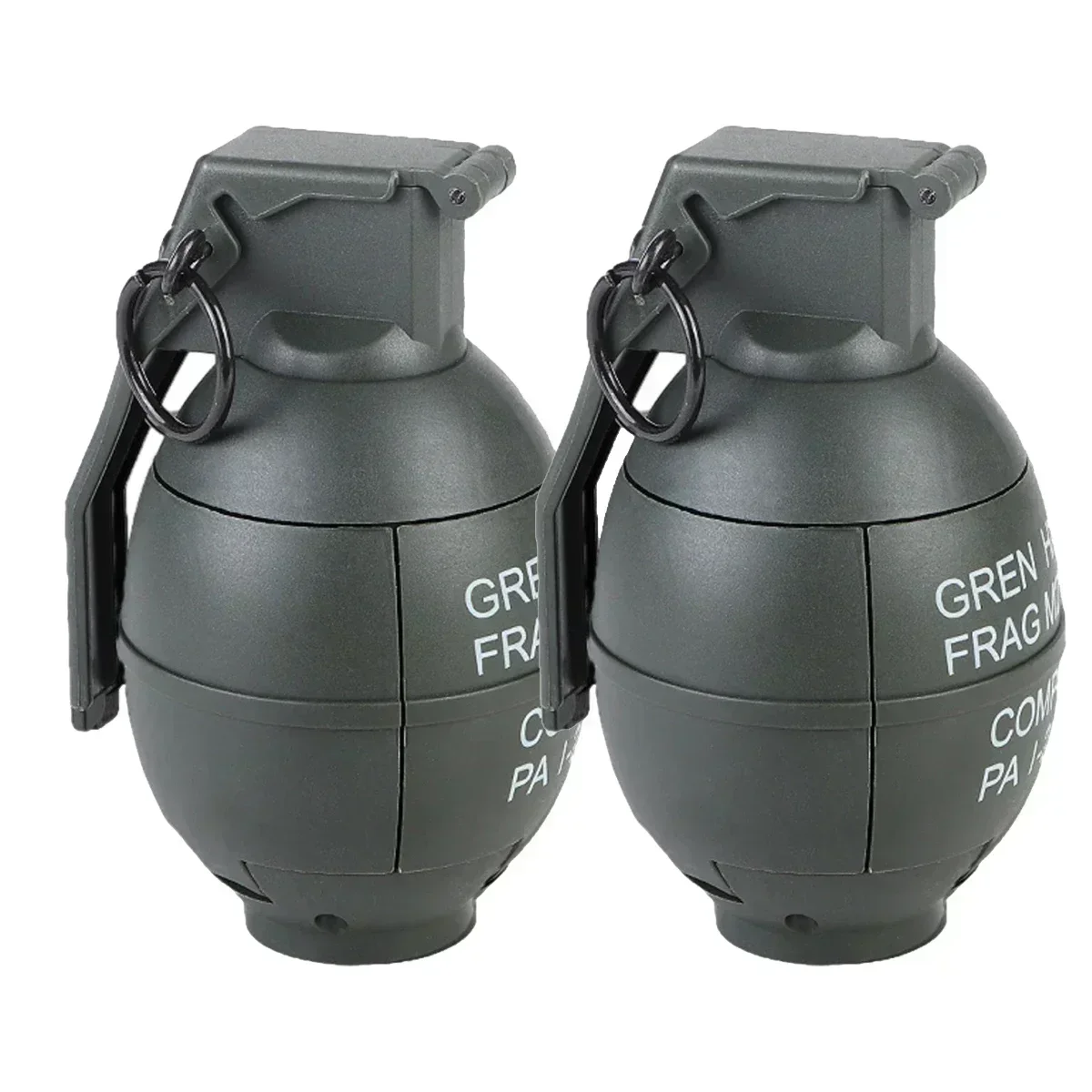 Granadas de impacto alimentadas por resorte, modelo de juguete de granadas de mano M67 de plástico táctico para Airsoft Paintball CS, accesorio de juego de rol, 2 uds.