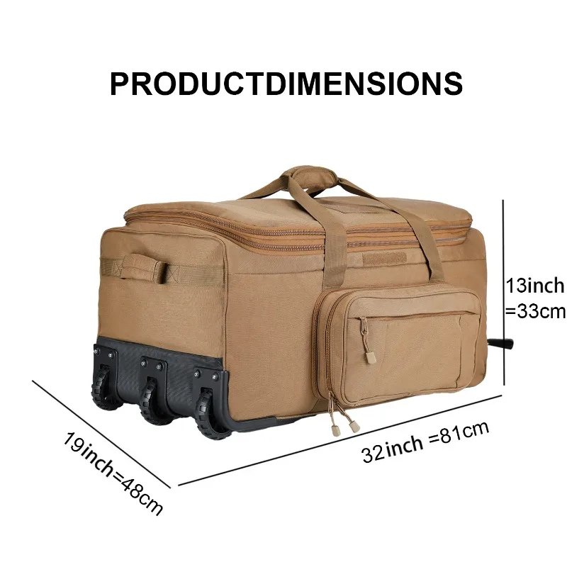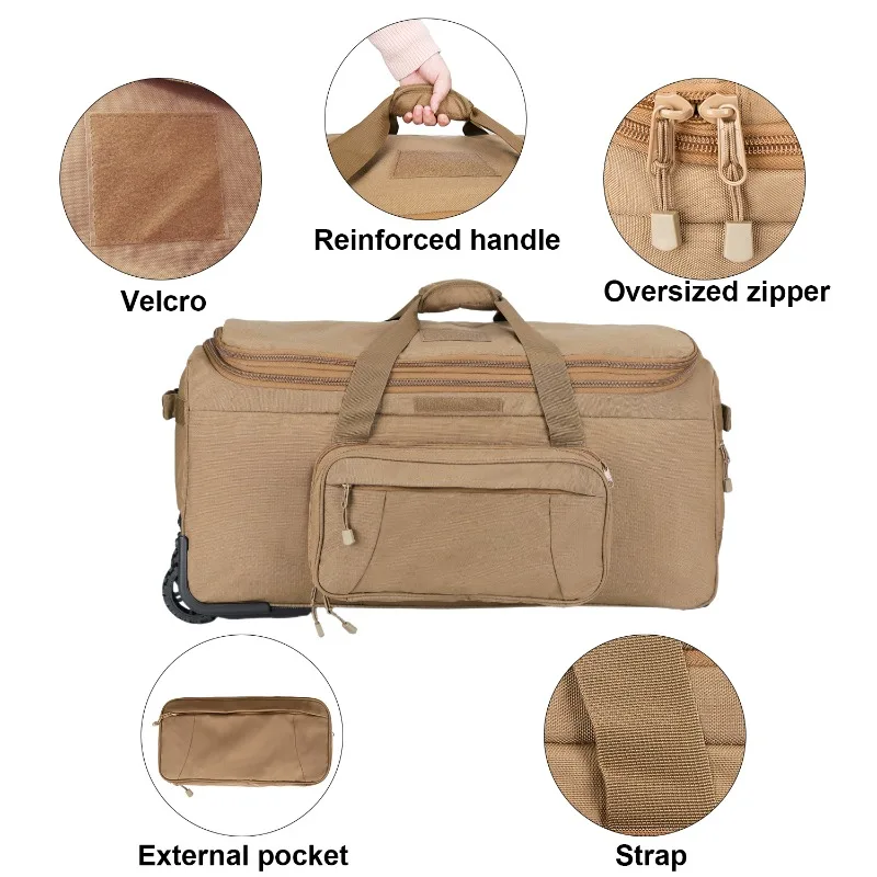 GREENCITY-Bolsa de viaje táctica militar de 128L, carrito desplegable con ruedas, bolsa de lona resistente para acampar, senderismo, correr y senderismo