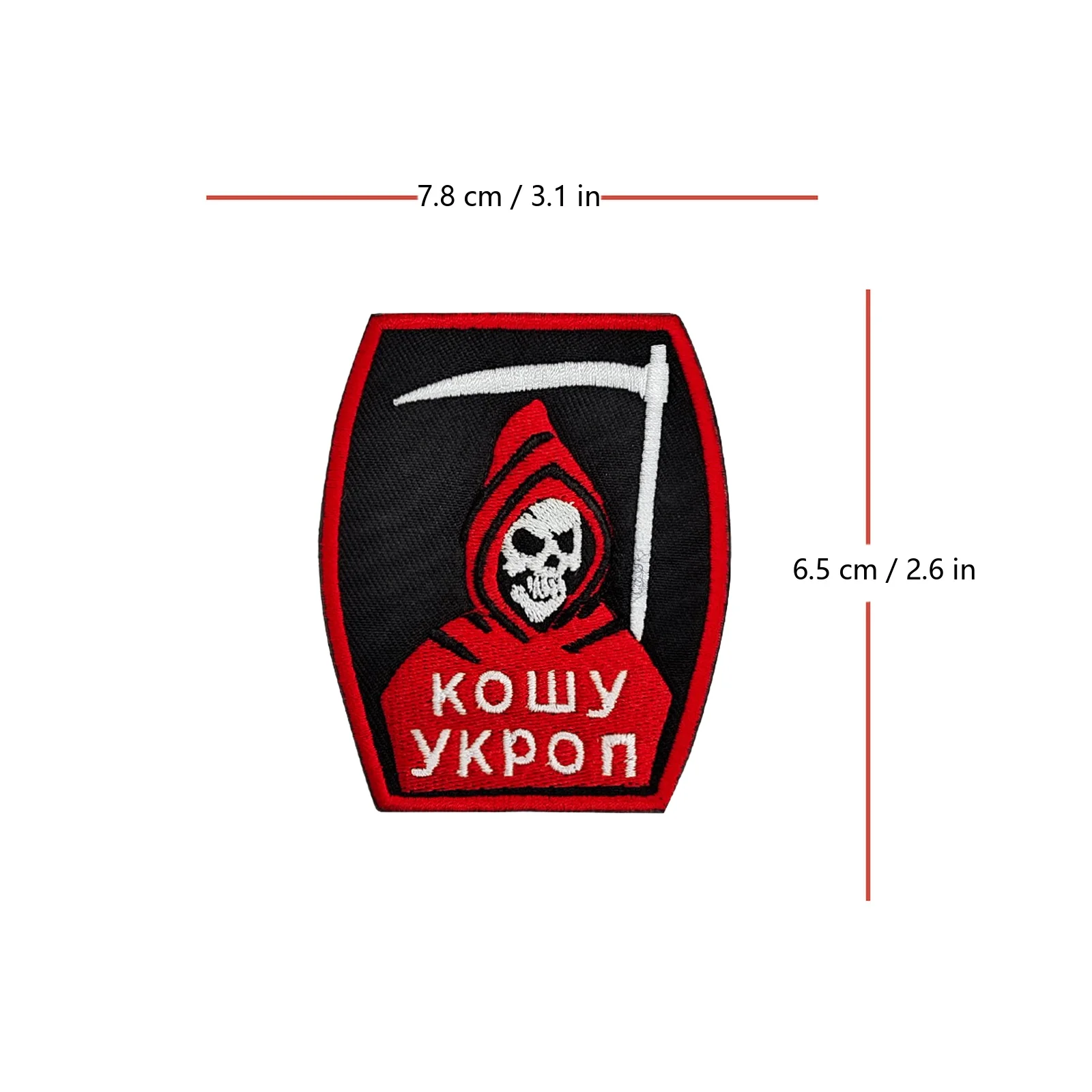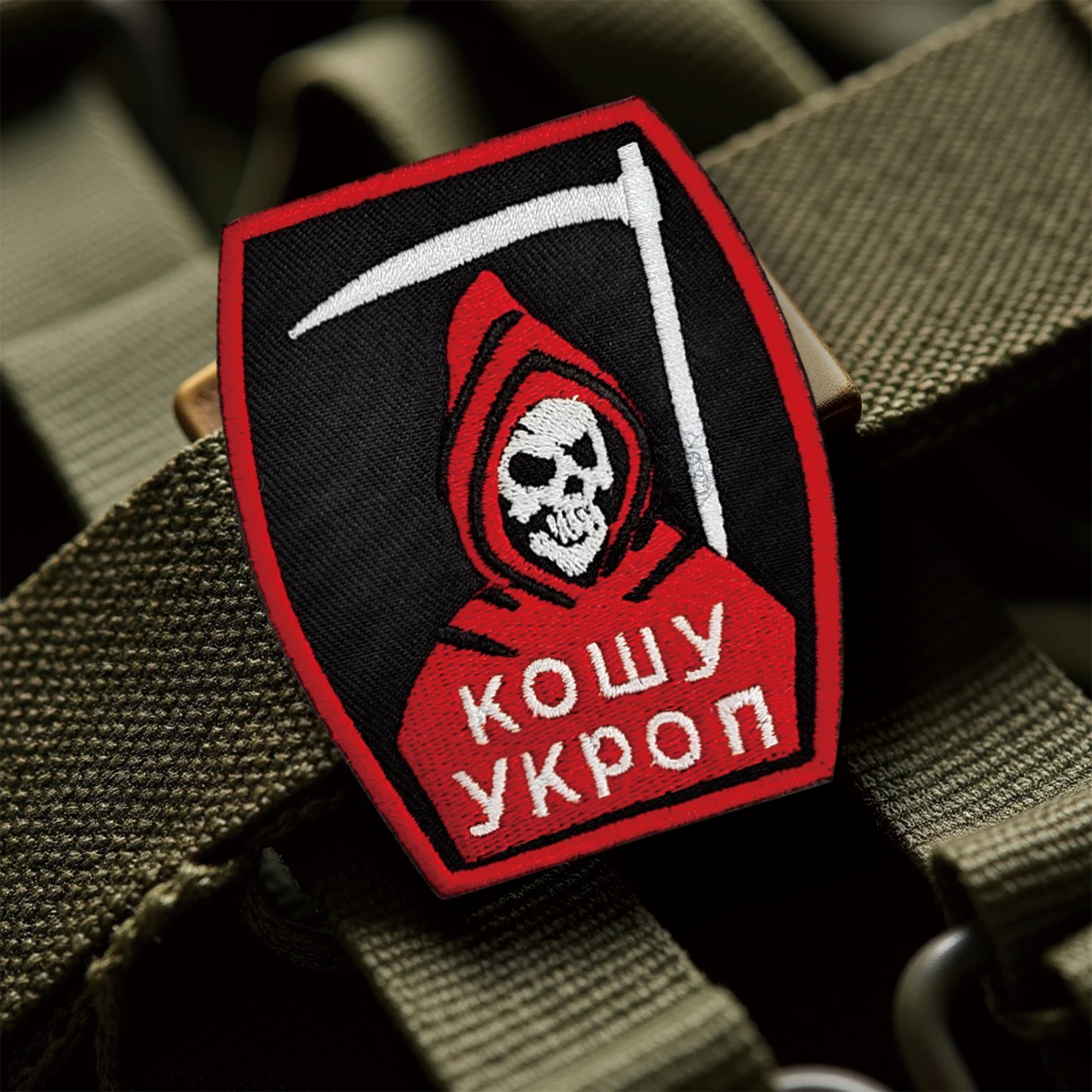 Grim Reaper Emblema cirílico Parche de Velcros Divertido Meme Cierre de gancho y bucle Insignia bordada para mochila táctica Molle, chaqueta