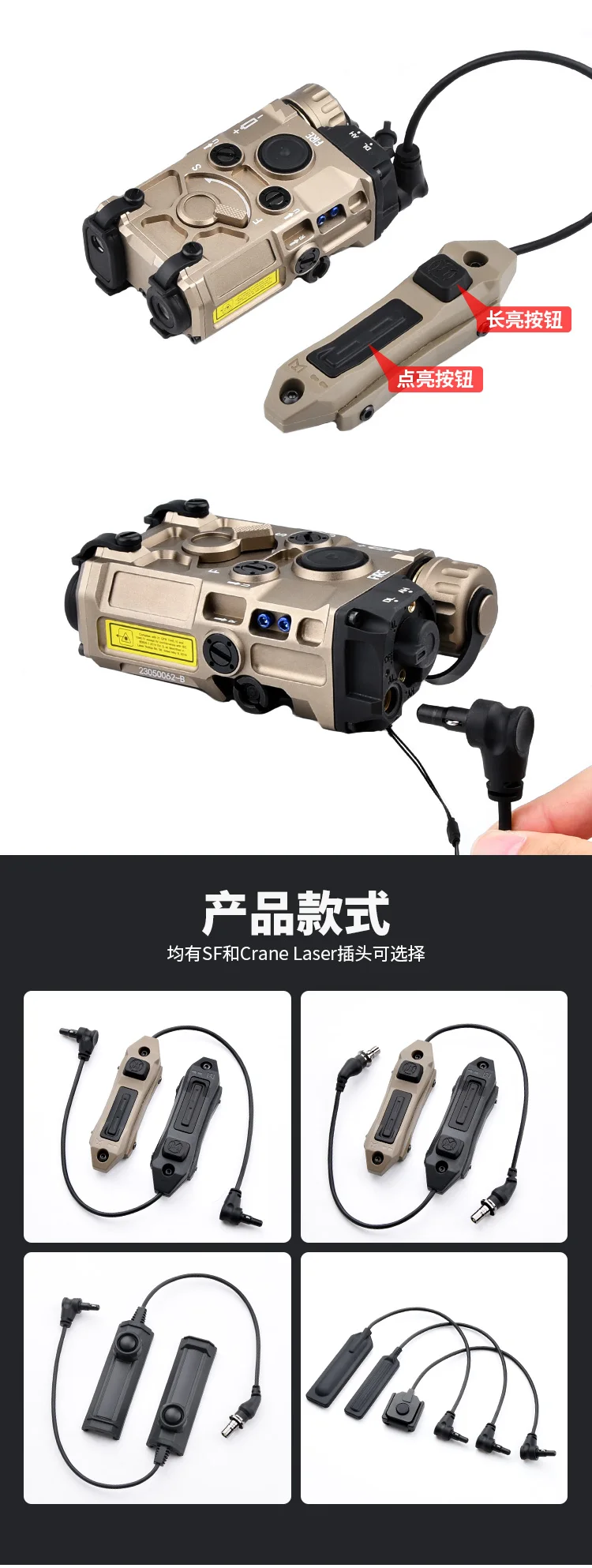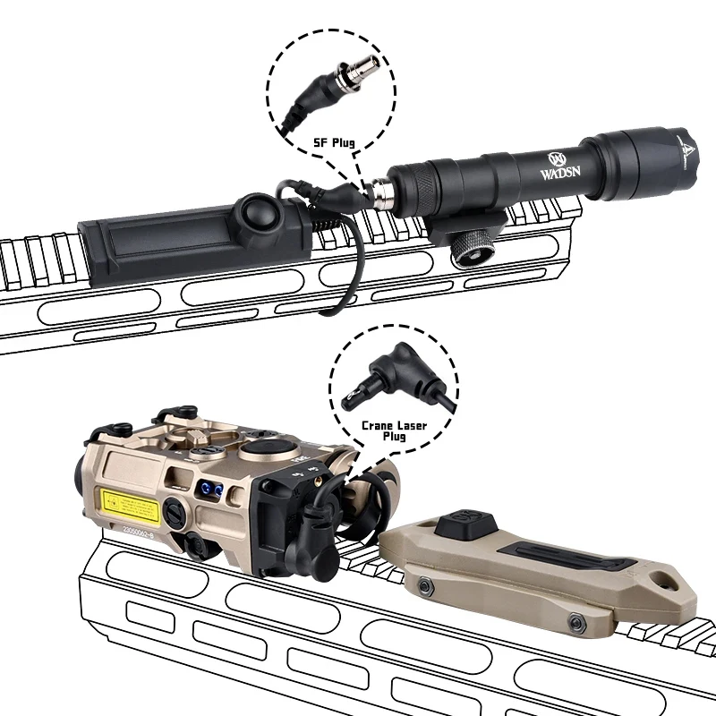 Grúa táctica de 2,5 MM y 3,5 MM, enchufe SF, interruptor de presión de doble función, botón remoto para DBAL PEQ15, MAWL, M300, M600, luz Scout