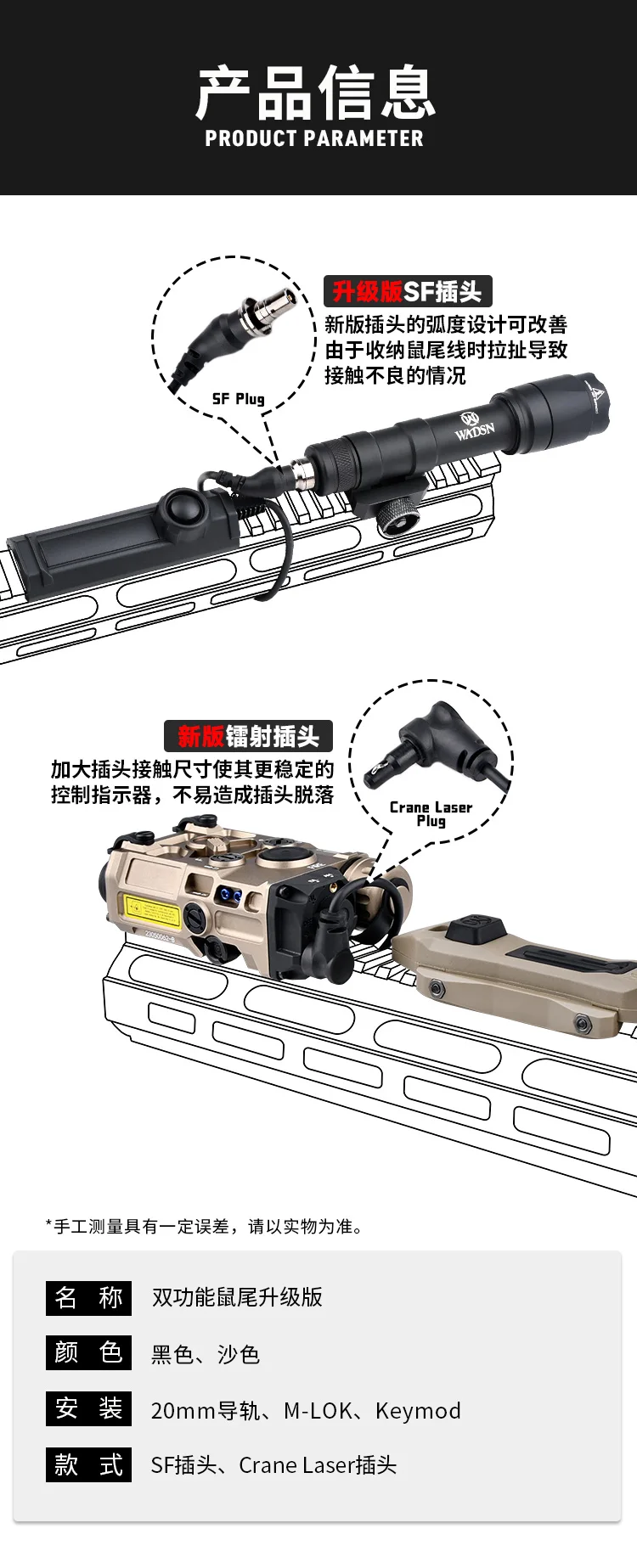 Grúa táctica de 2,5 MM y 3,5 MM, enchufe SF, interruptor de presión de doble función, botón remoto para DBAL PEQ15, MAWL, M300, M600, luz Scout