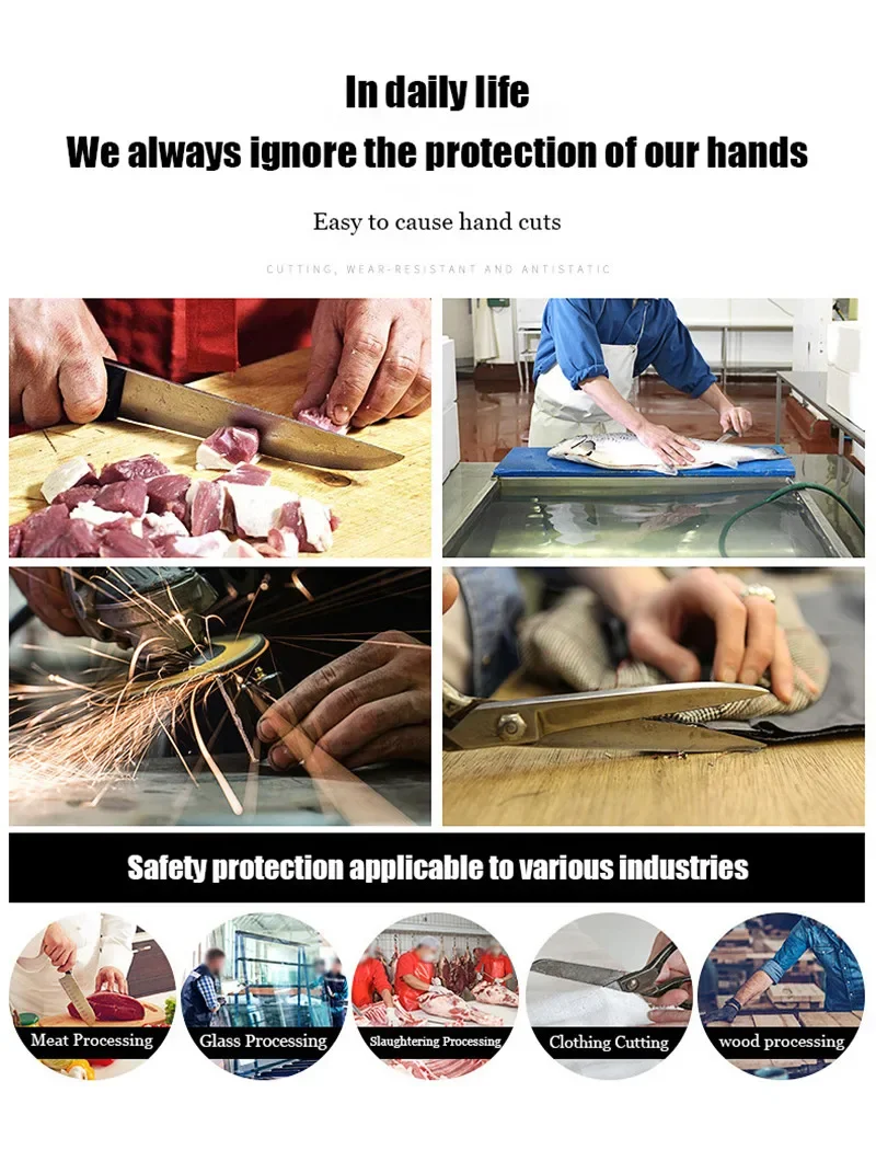 Guantes de corte HPPE de nivel 5, guantes de acero inoxidable resistentes a los cortes, guantes de trabajo, malla metálica, guantes de cocina de carnicero anticorte