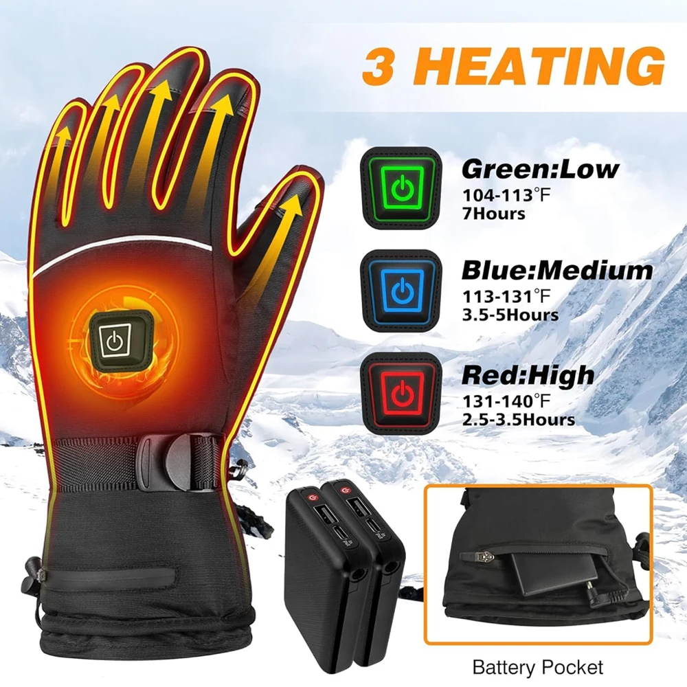 Guantes calefactables 5000mAh, guantes térmicos de invierno recargables, guantes con pantalla táctil calefactora eléctrica para motocicleta, senderismo, esquí, caza