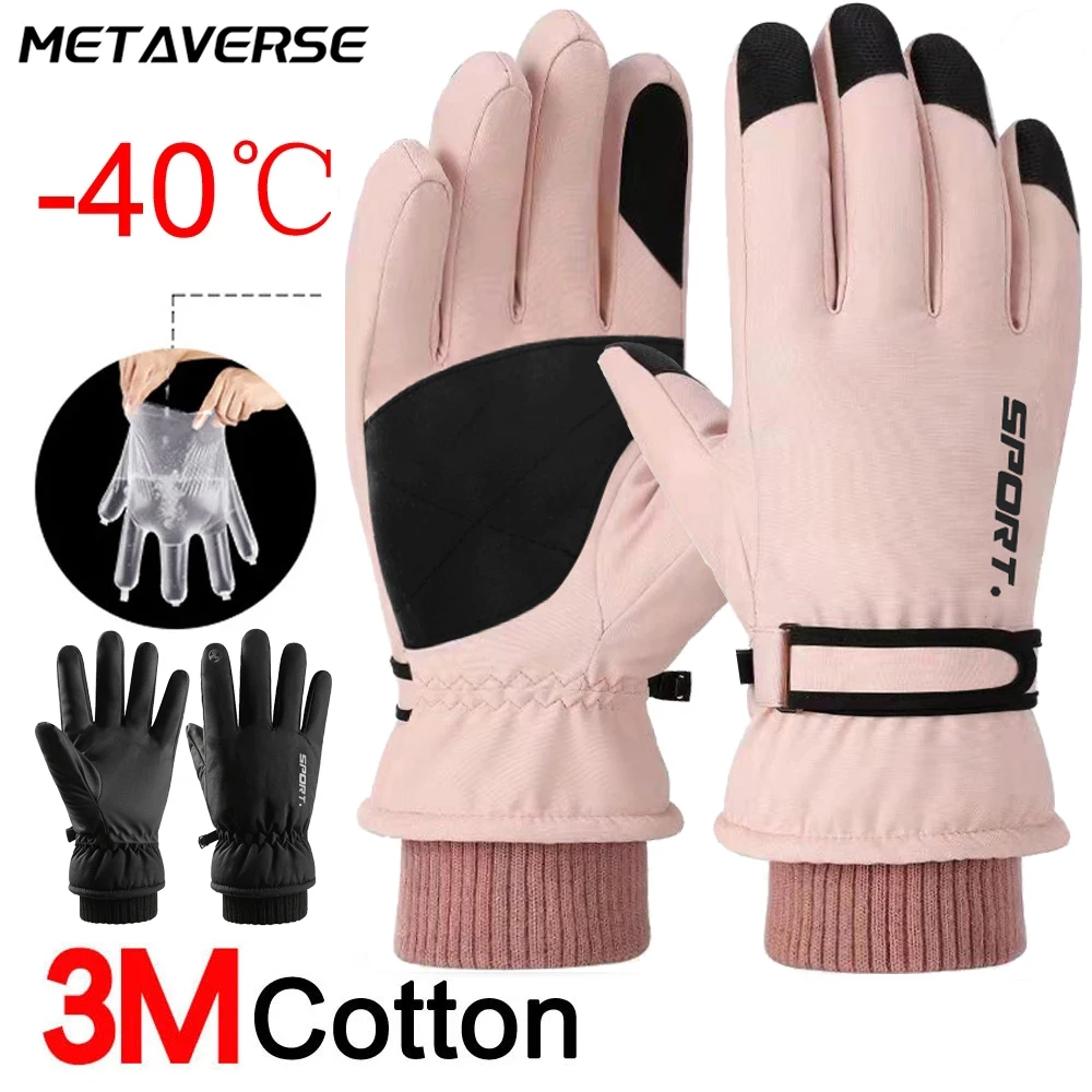 Guantes de ciclismo impermeables para mujer, de invierno, para deportes al aire libre, correr, motocicleta, esquí, pantalla táctil, guantes de lana antideslizantes y cálidos de dedo completo