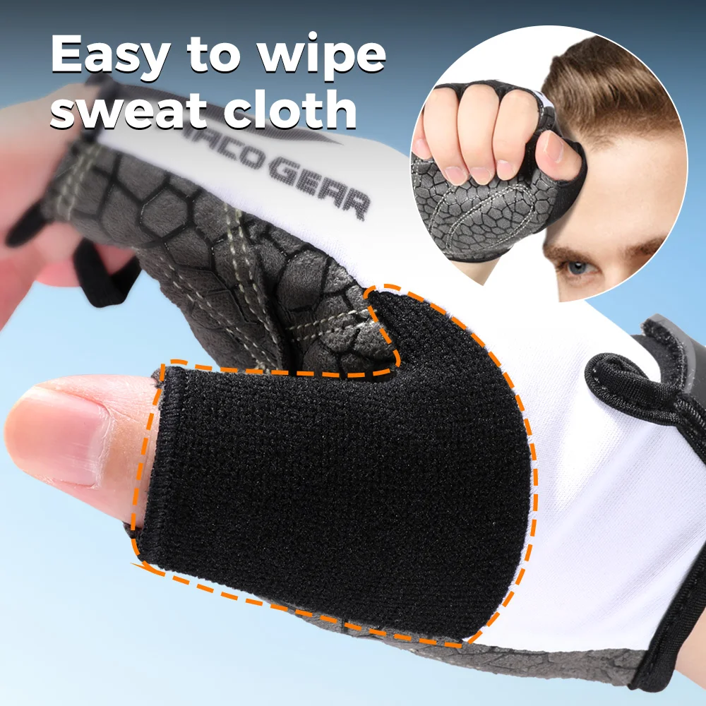 El diseño humanizado cuenta con el paño súper absorbente para el sudor en la parte exterior del pulgar de los guantes de ciclismo que puede limpiar fácilmente el sudor.