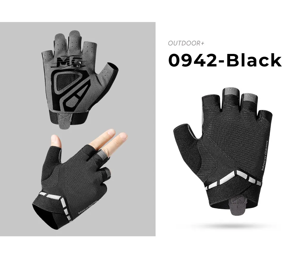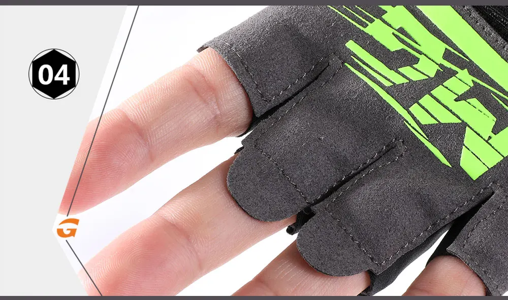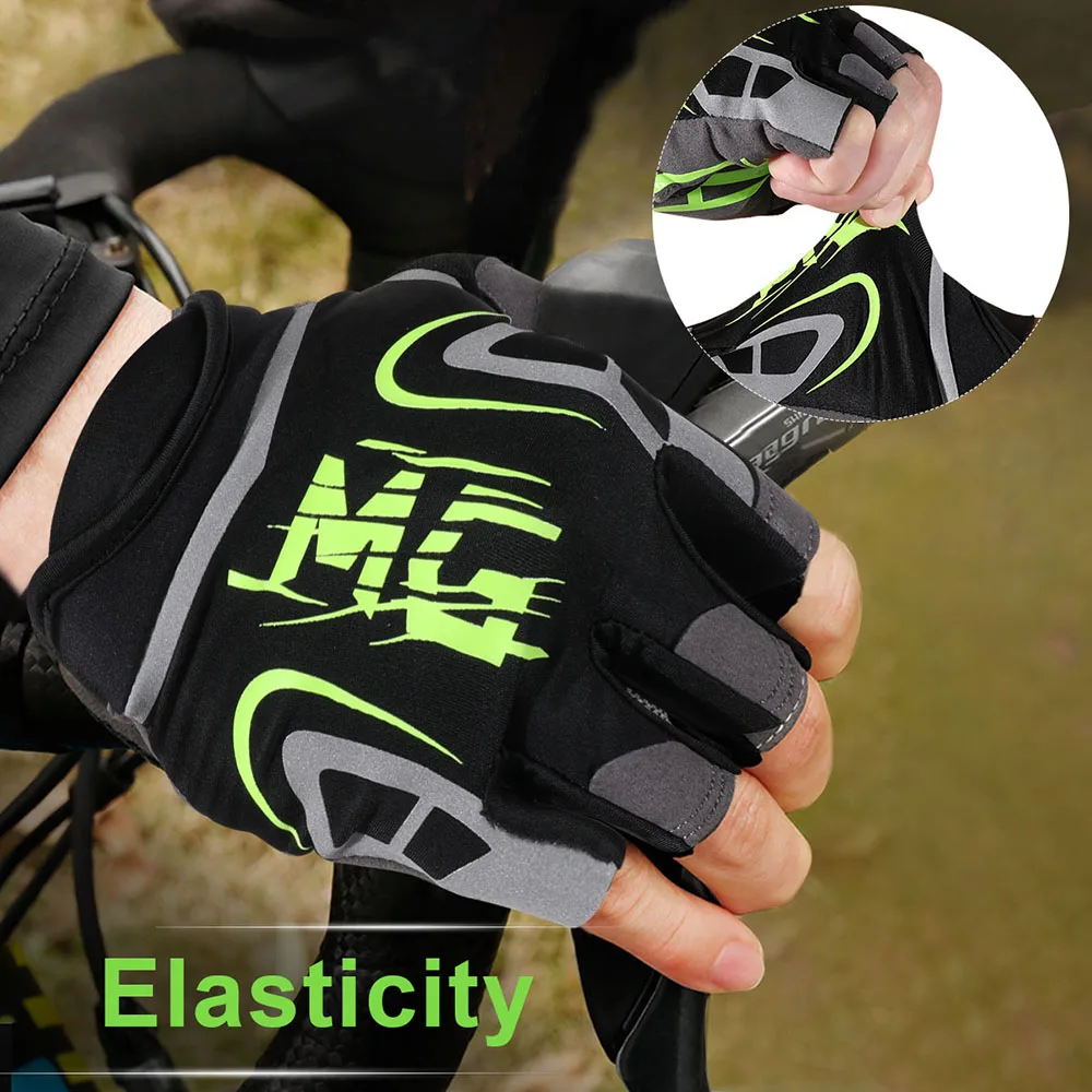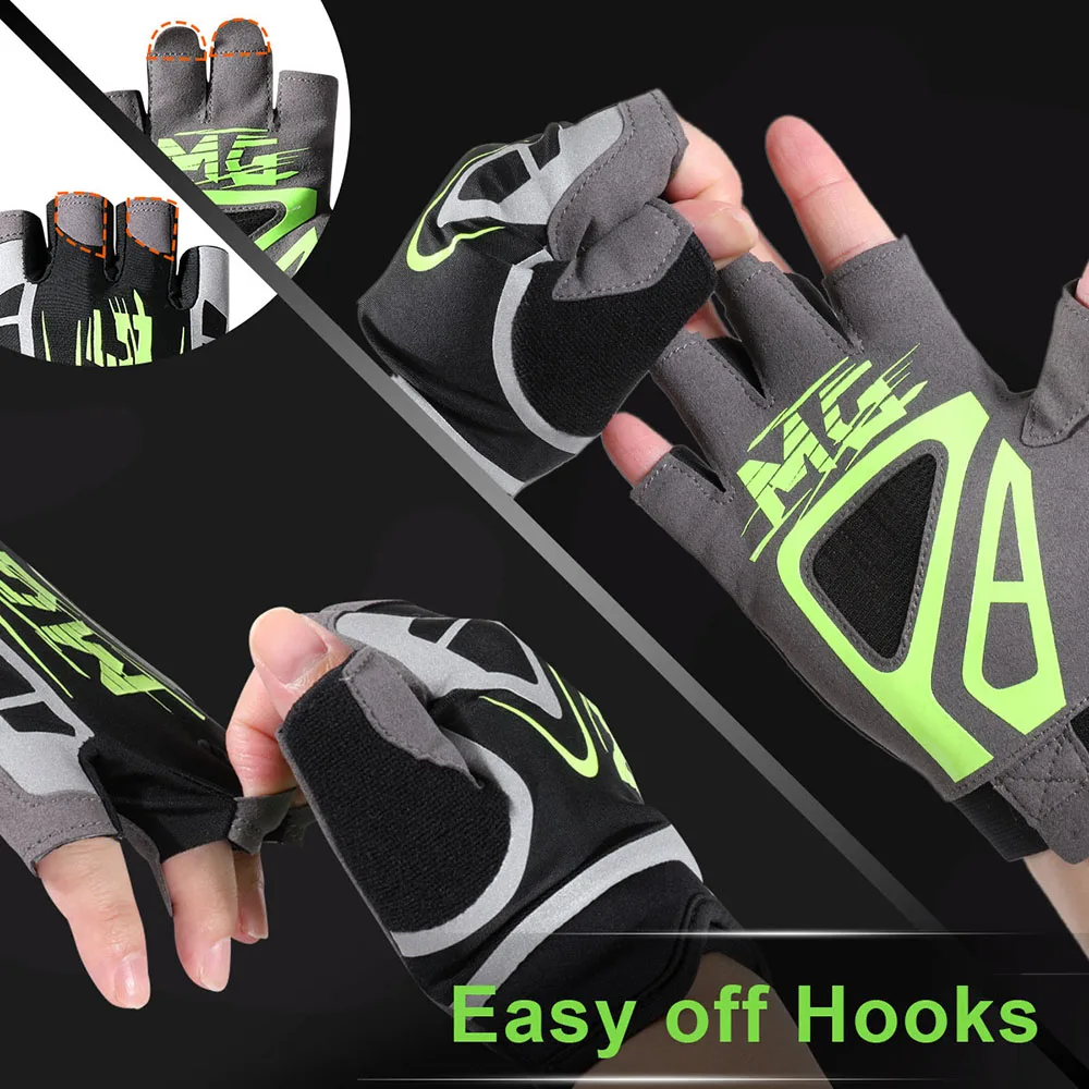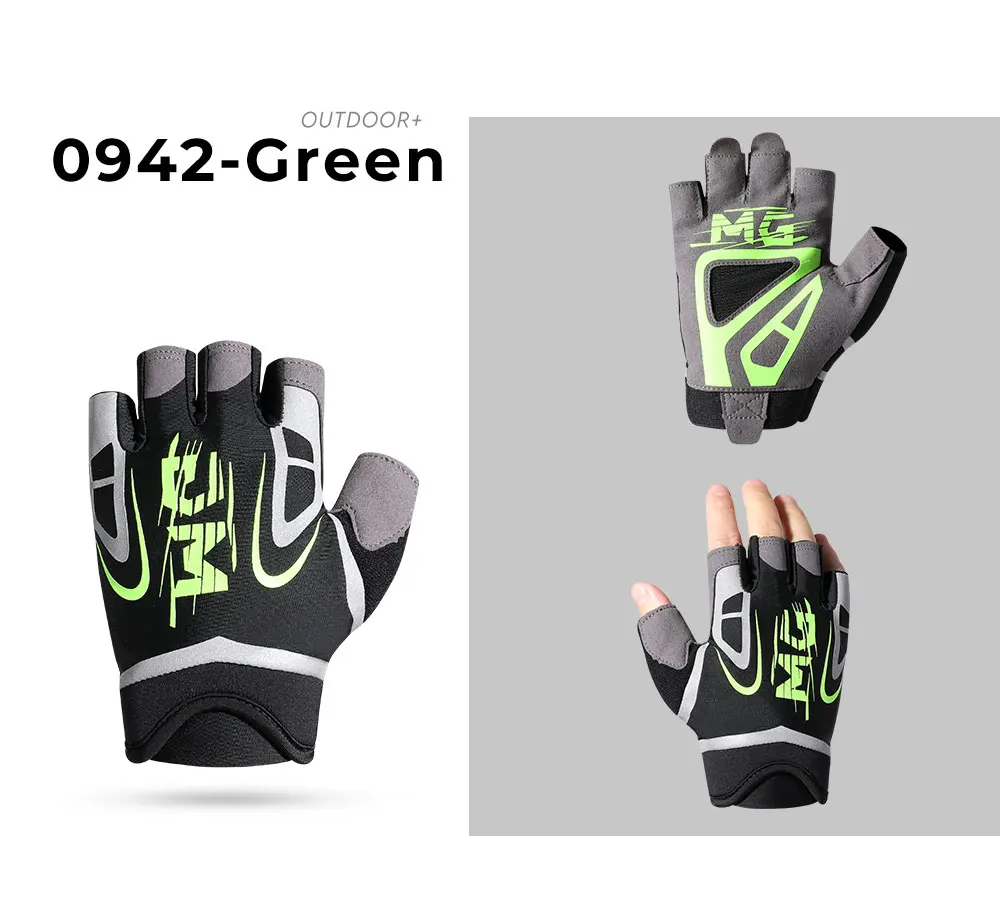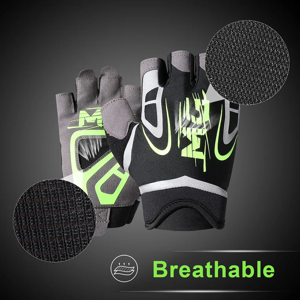 Hecho de material transpirable resistente al desgarro de poliéster, ligero y cómodo. Diseño de medio dedo para protección y flexibilidad.