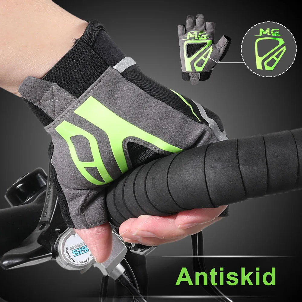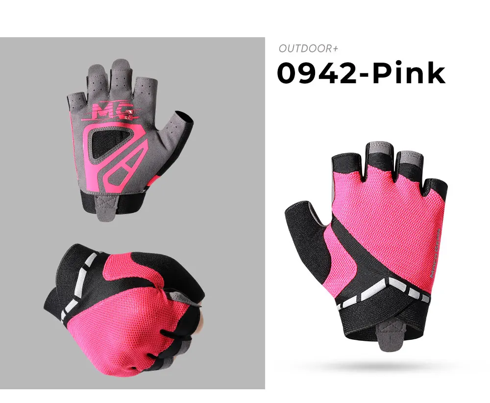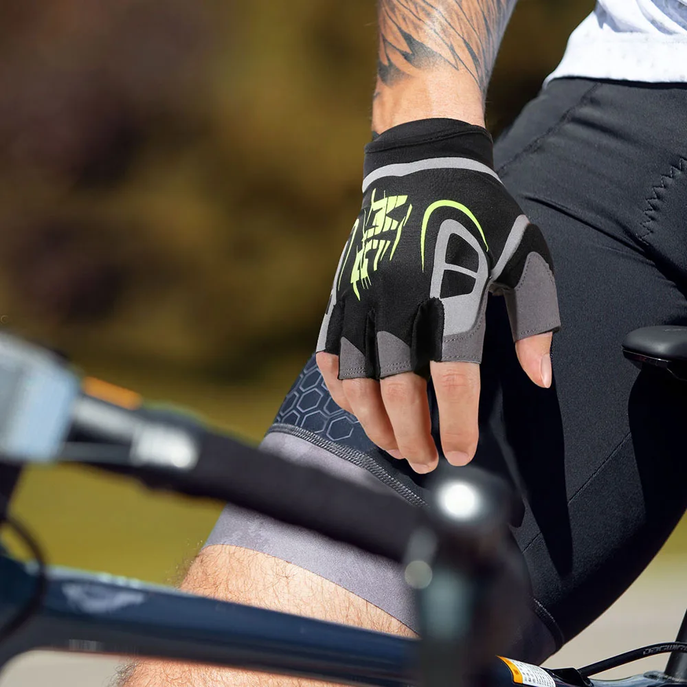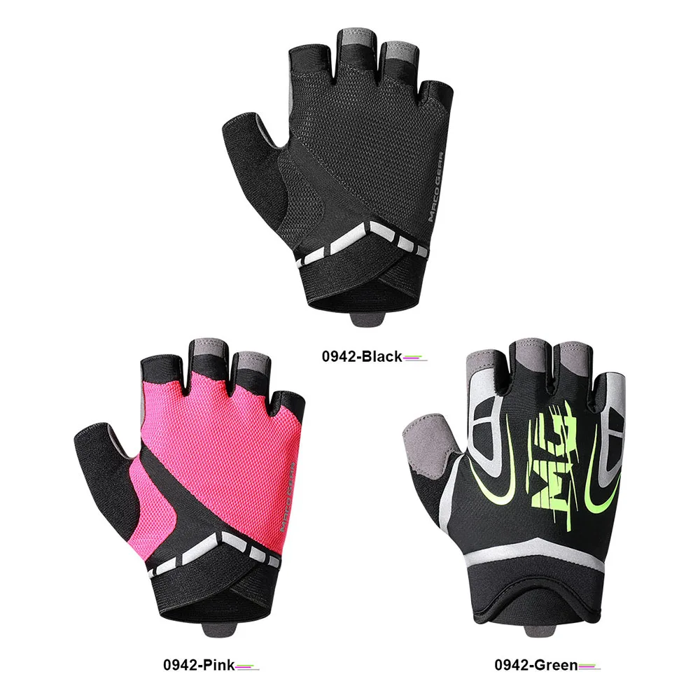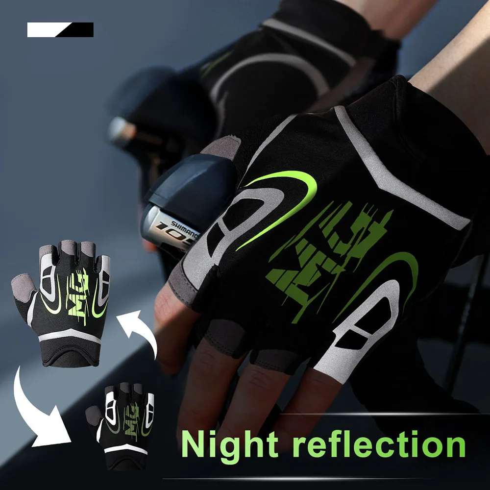 Hecho de material transpirable resistente al desgarro de poliéster, ligero y cómodo. Diseño de medio dedo para protección y flexibilidad.