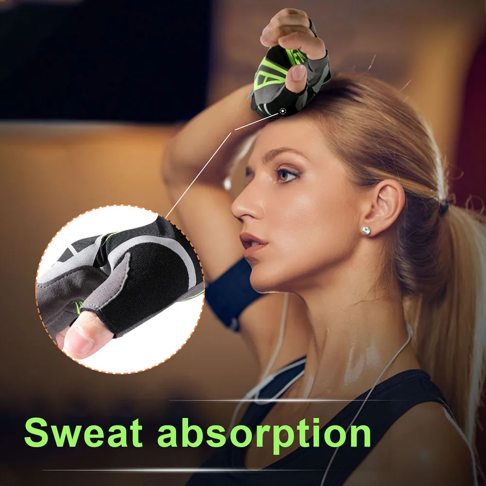 3.Paño de toalla altamente absorbente en la parte exterior del pulgar, que puede limpiar fácilmente el sudor. La tela de malla en la palma mantiene tus manos frescas y secas.