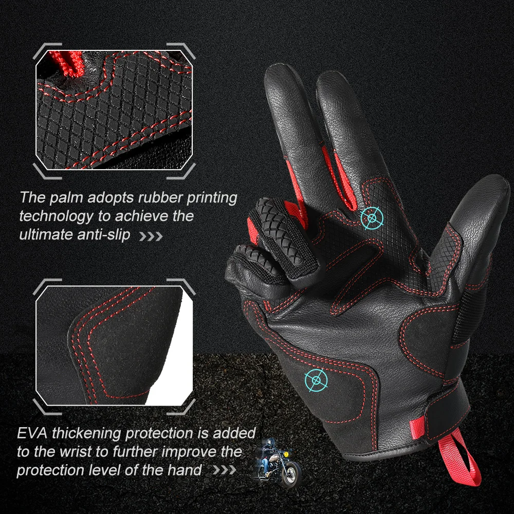 5. Durability and Comfort: The motorcycle gloves is made of microfiber material, wear-resistant, lightweight, fast drying and also perfect, also are built with double-stitch seams for durability and longevity under any condition.