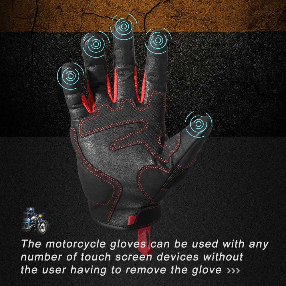 The five fingers of the gloves have a touch screen function, and the touch screen device can be easily used without removing the glove during motorcycling/riding.
