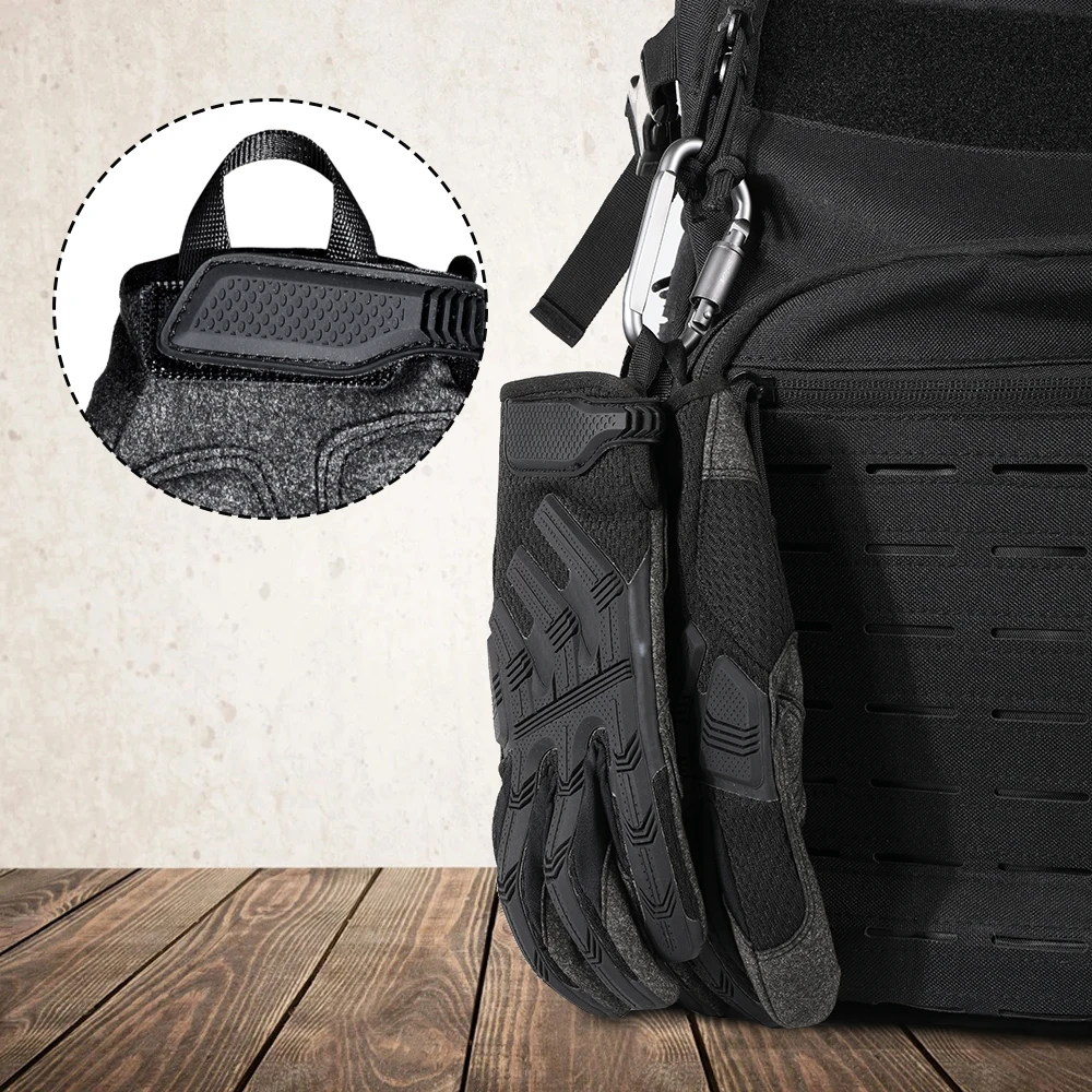 Diseño de velcro para un fácil almacenamiento y evitar la pérdida de guantes izquierdo y derecho.(ps: el mosquetón debe ser comprado por usted mismo)
