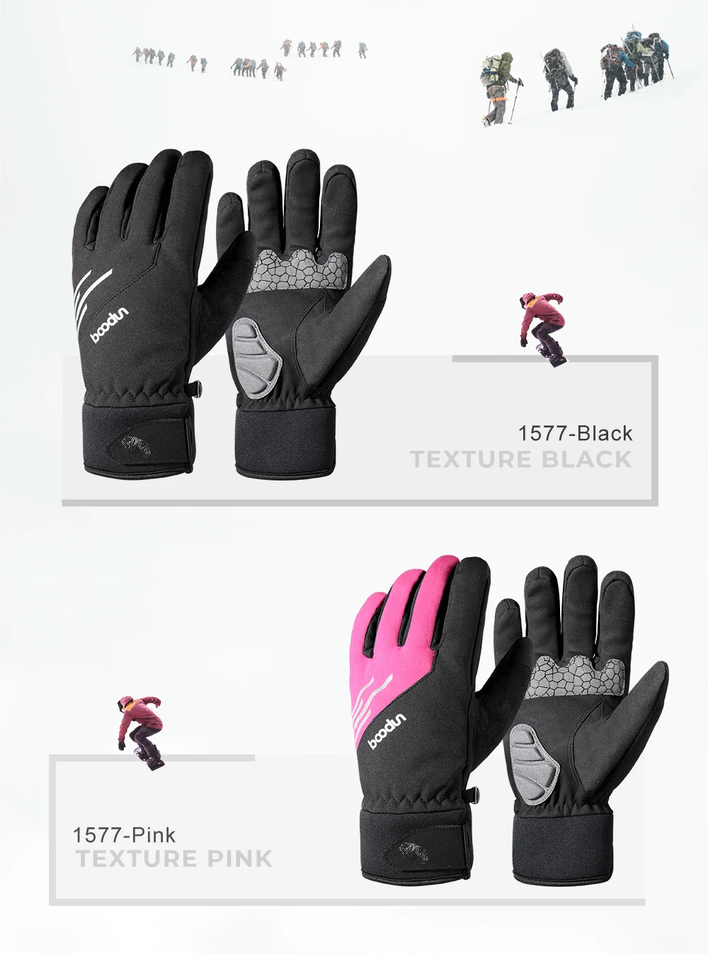 Características:Pantalla táctil, 3M de espesor térmico, terciopelo, resistente al viento, impermeable, antideslizante, a prueba de golpes, resistente al desgaste, agradable a la piel, ligero, duradero.