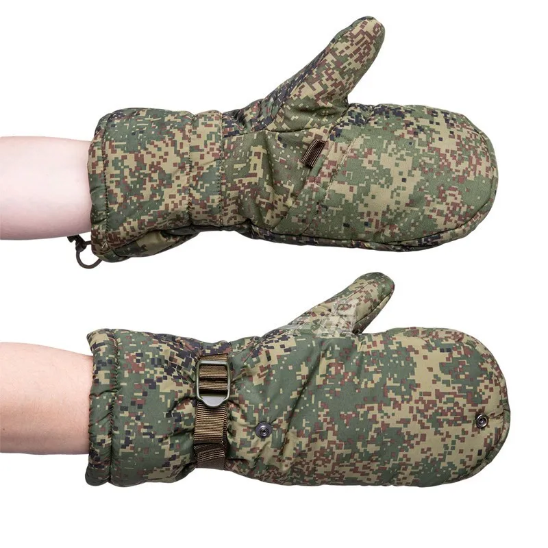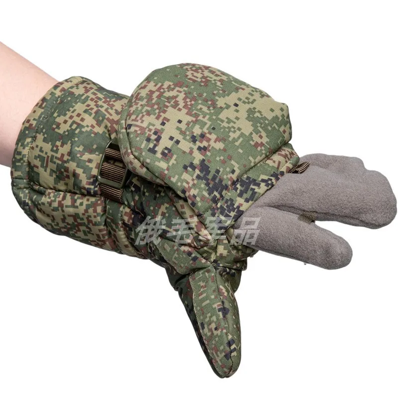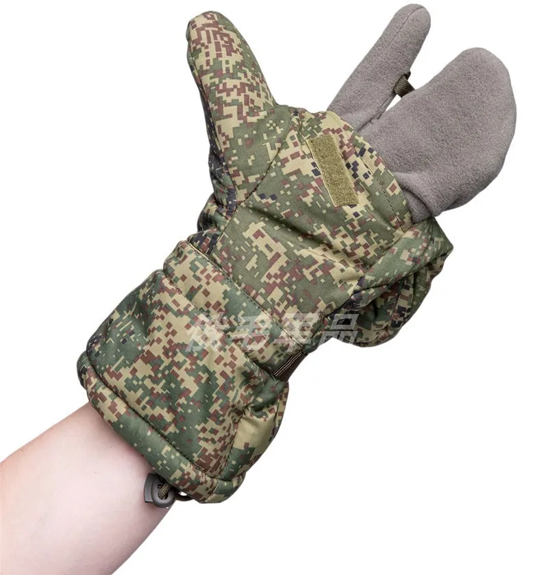 Este guante de invierno es parte del uniforme básico VKBO (VKPO) de Rusia para todas las estaciones. El material está hecho de fibra de poliéster impermeable, y el relleno está hecho de algodón P y felpa artificial. El forro de felpa se puede desmontar para una fácil limpieza. Se caracteriza por ser ligero y compacto, la tela puede ser a prueba de humedad, nieve y viento; No absorbe la humedad, buen calor.