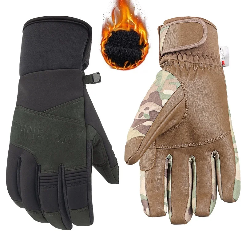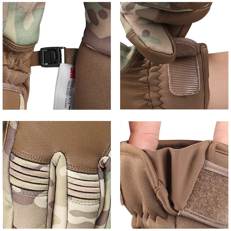 Guantes de invierno para hombre, resistentes al viento, resistentes al agua, mantienen el calor, para montar en bicicleta, dedo completo, guantes de carreras, pantalla táctil antideslizante, deportes al aire libre, forro de lana, equipo de protección de camuflaje