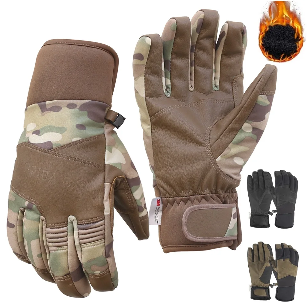 Guantes de invierno para hombre, resistentes al viento, resistentes al agua, mantienen el calor, para montar en bicicleta, dedo completo, guantes de carreras, pantalla táctil antideslizante, deportes al aire libre, forro de lana, equipo de protección de camuflaje