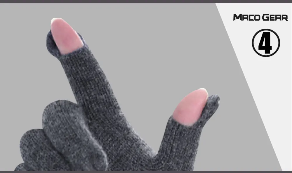 2.El pulgar y el dedo índice están diseñados con aberturas que le permiten tocar dispositivos electrónicos sin quitarse los guantes. Es más flexible y conveniente.
