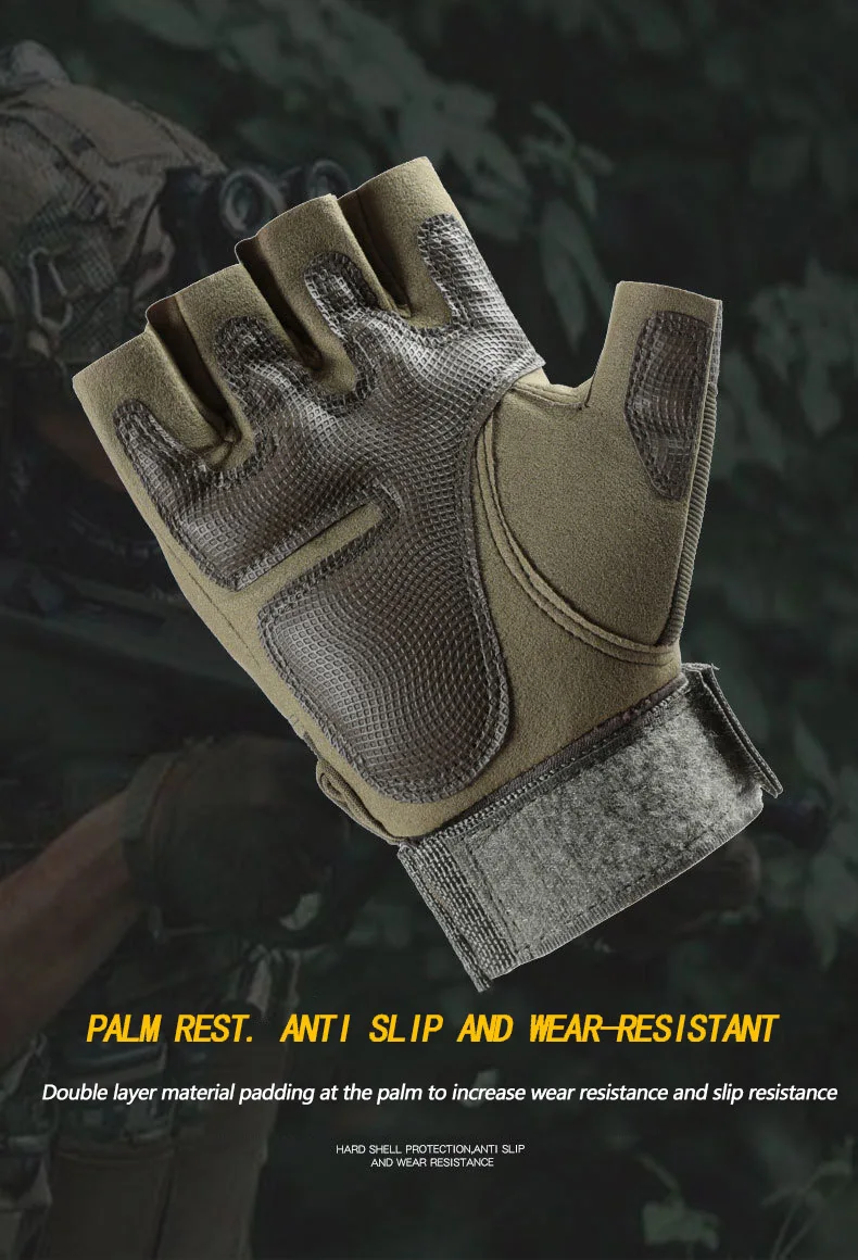 Guantes duros de medio dedo para hombre, combate, caza, Airsoft, Paintball, sin dedos