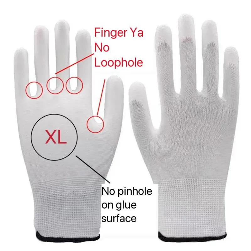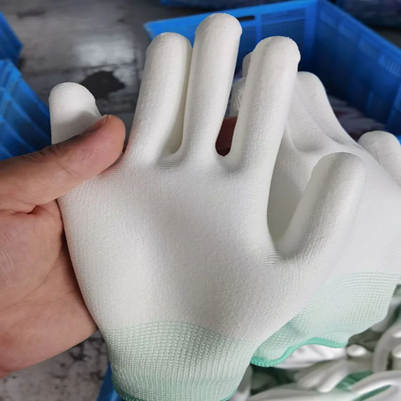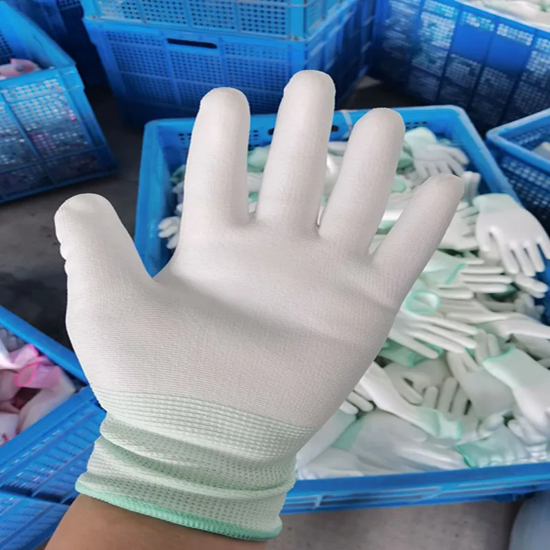 Guantes de nailon para hombres y mujeres, guantes de palma recubiertos de PU, guantes protectores para el mejor trabajo, maquinaria de seguridad, guantes de trabajo, revestimiento, taller libre de polvo, sitio de construcción, trabajo de fábrica, protección laboral, guantes de seguridad