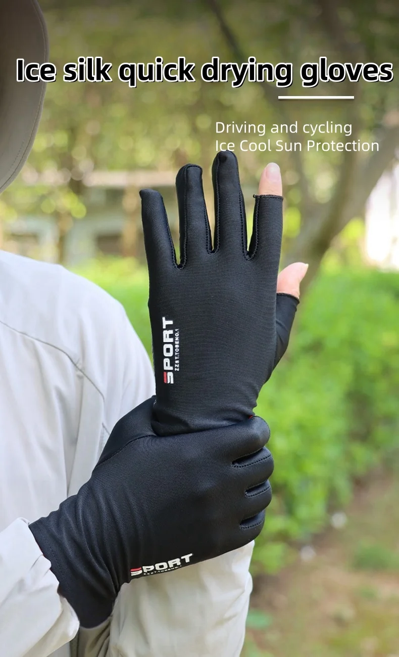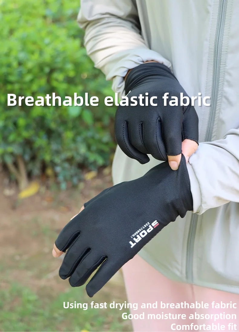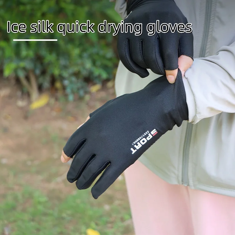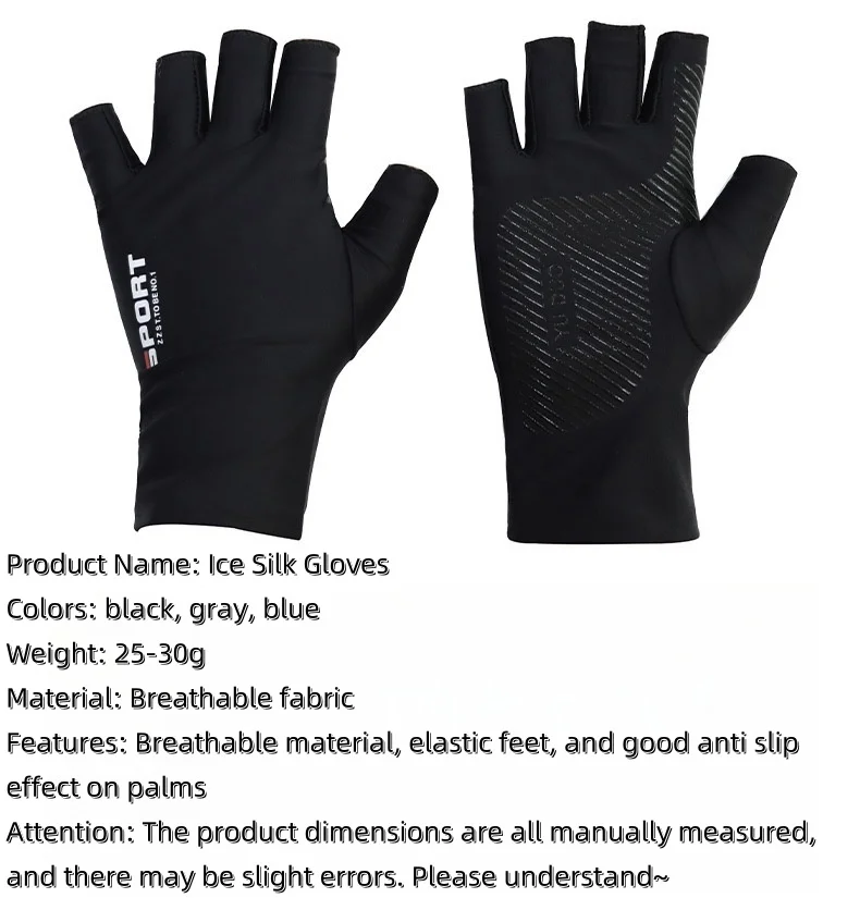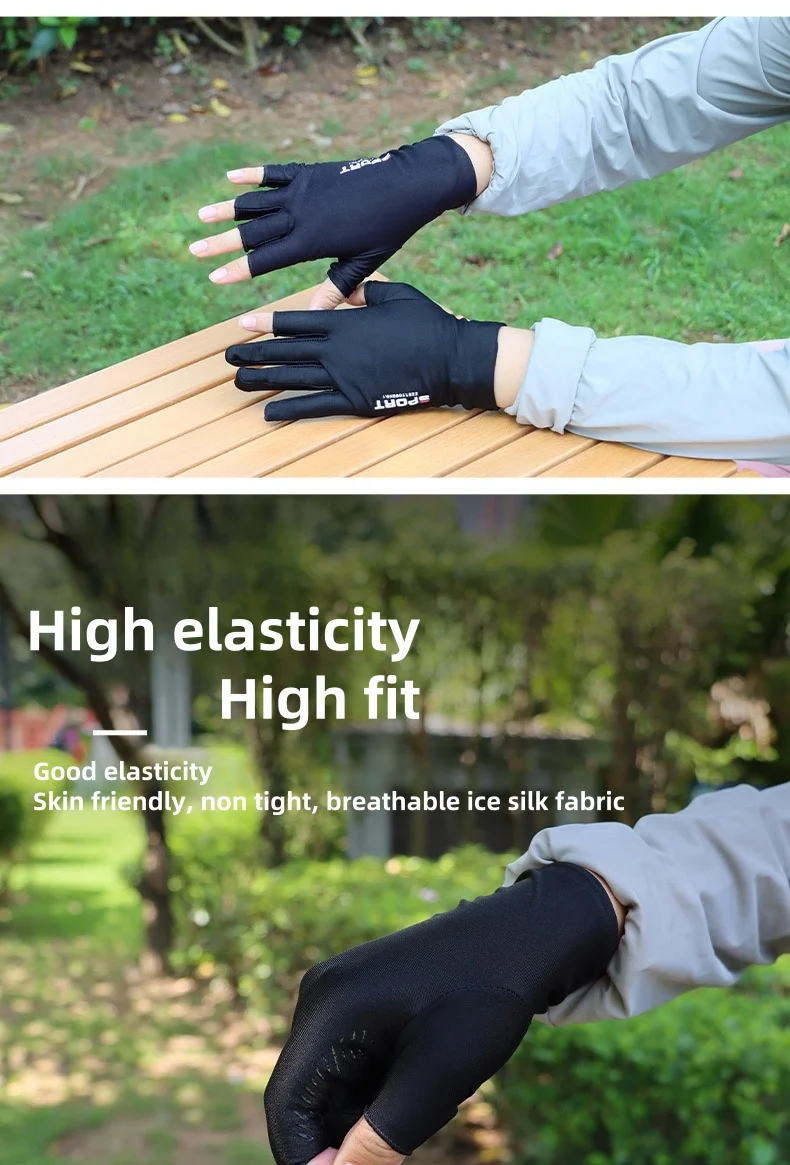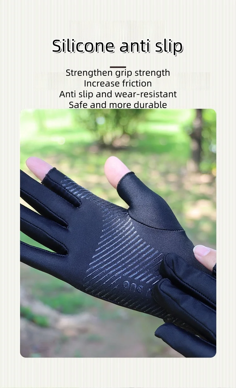 Guantes de pesca con dedos faltantes, medio dedo, seda de hielo, antideslizantes, transpirables, a prueba de sol, fitness, ciclismo, e