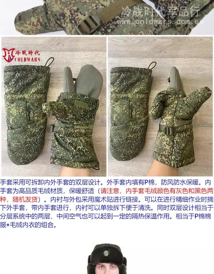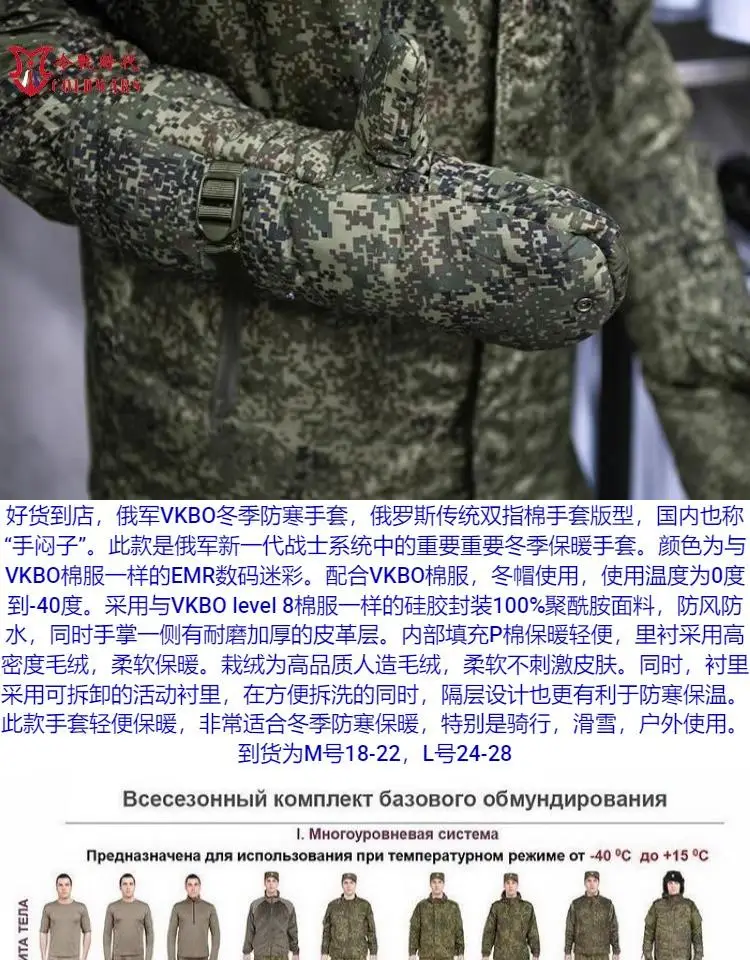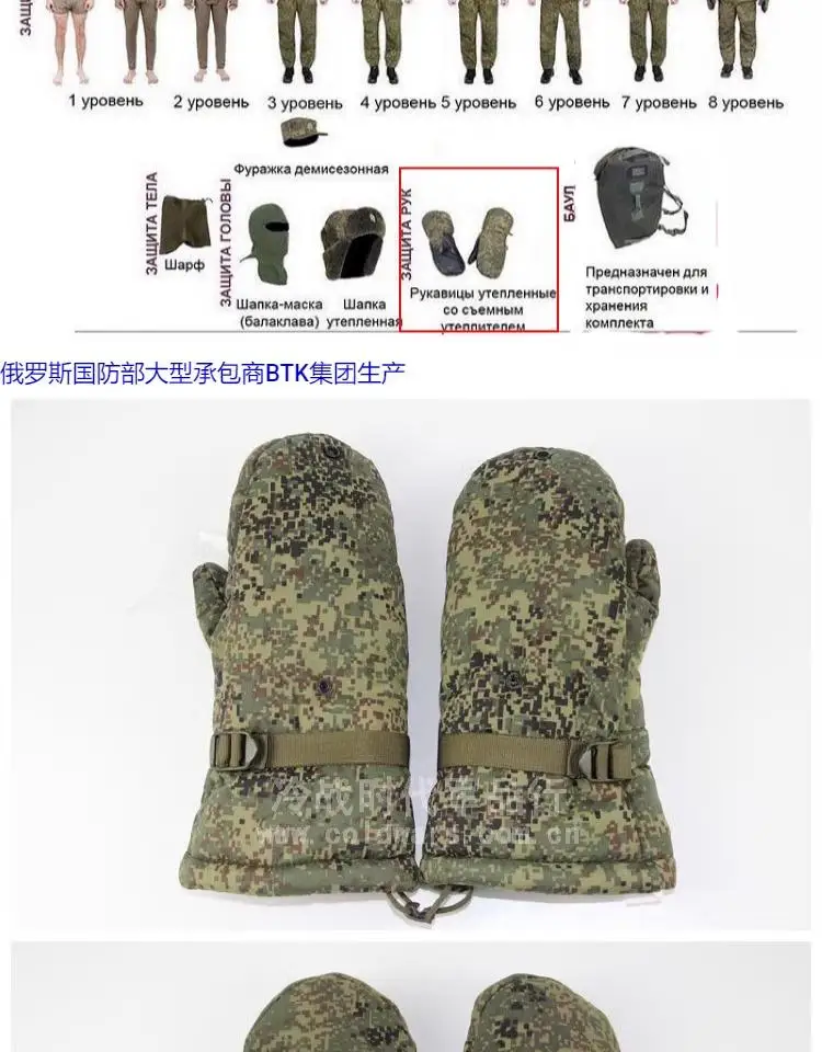 Guantes primaloft aislados de invierno con sistema ruso VKBO, camuflaje BTK EMR
