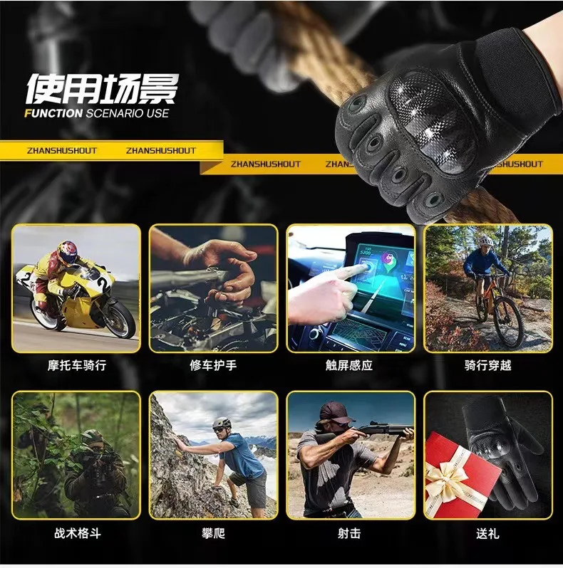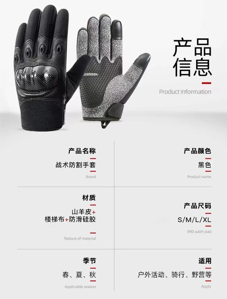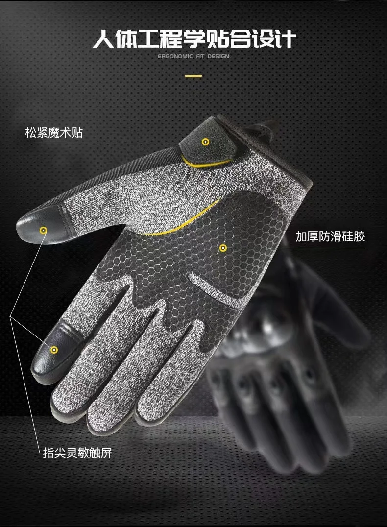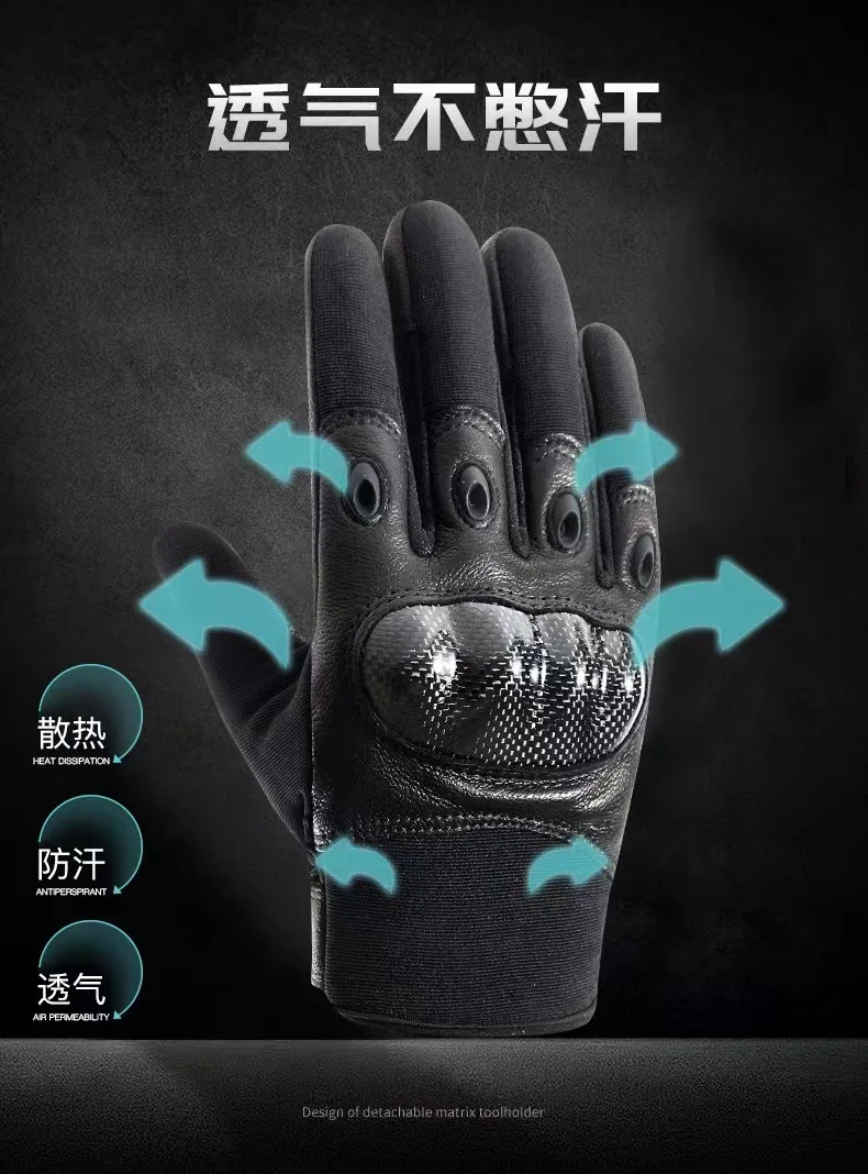 El dorso de la mano está protegido por una carcasa de fibra de carbono para proteger las articulaciones.La punta del dedo está diseñada con una pantalla táctil sensible que admite el funcionamiento con dos dedos de dispositivos electrónicos.