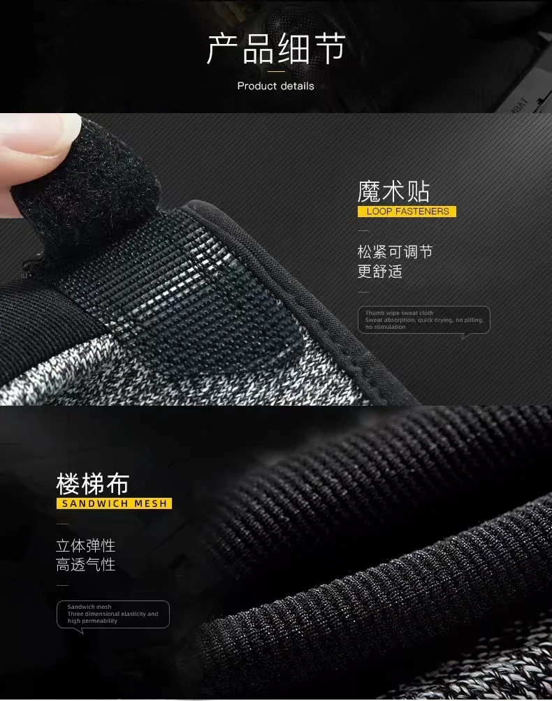 Este par de guantes está hecho de piel de cabra, tela de escalera y silicona antideslizante.Tiene 5 niveles de resistencia al corte.La palma está equipada con un tejido resistente al corte de cuchillos y un material antideslizante de silicona, lo que proporciona resistencia al corte y propiedades antideslizantes y resistentes al desgaste.
