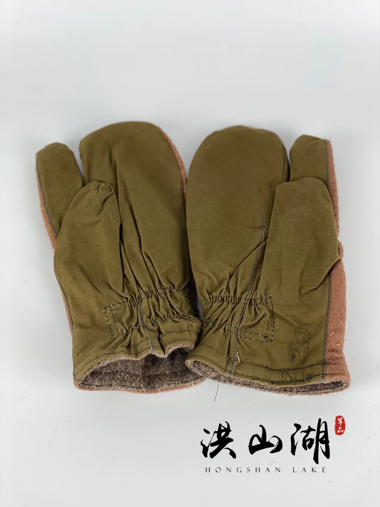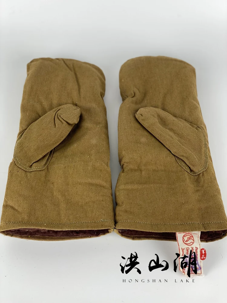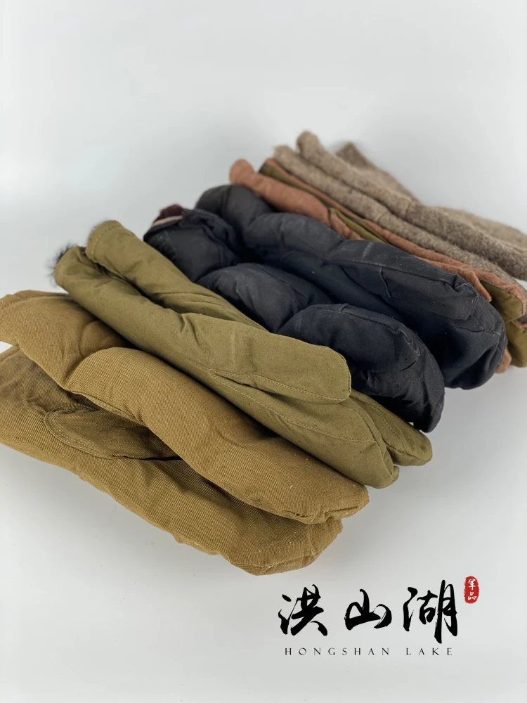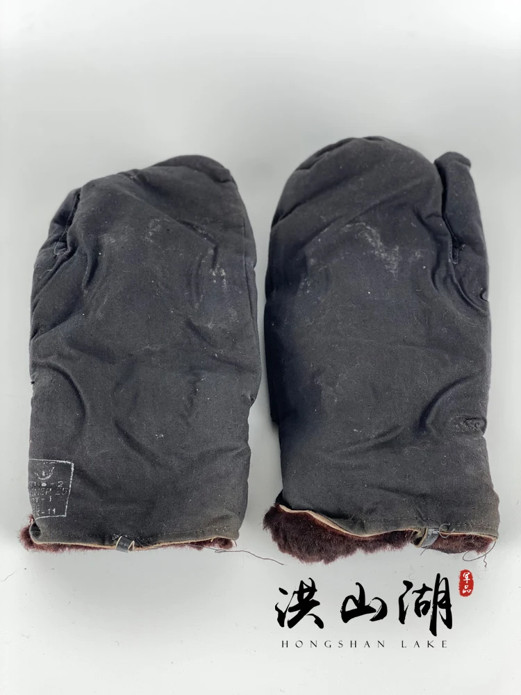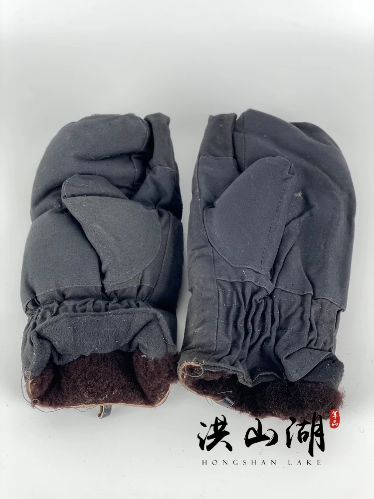 Winter gloves (Type A), made of cotton and linen on the outside, with integrated fur and leather lining.