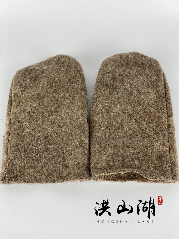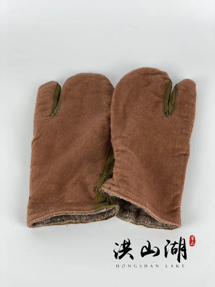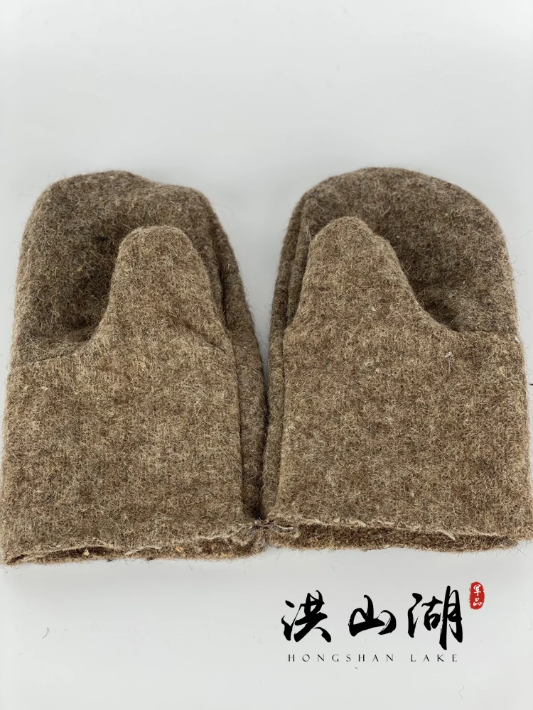 Winter gloves (D style), with fur and canvas on the outside, embedded with felt cloth.