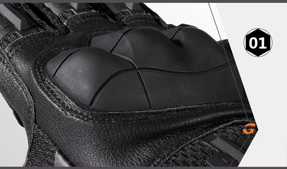 1.Protección integral:La carcasa de goma dura y la protección de las articulaciones de los dedos brindan protección contra impactos, lo que puede proteger la parte posterior de los dedos del impacto y la abrasión en el sitio.