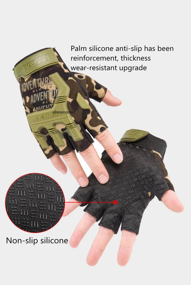 Guantes tácticos de camuflaje, guantes de entrenamiento antideslizantes de medio dedo para ciclismo, guantes de combate sin dedos para caza y senderismo