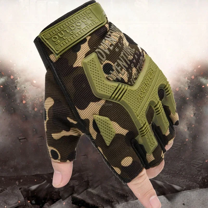 Guantes tácticos de camuflaje, guantes de entrenamiento antideslizantes de medio dedo para ciclismo, guantes de combate sin dedos para caza y senderismo