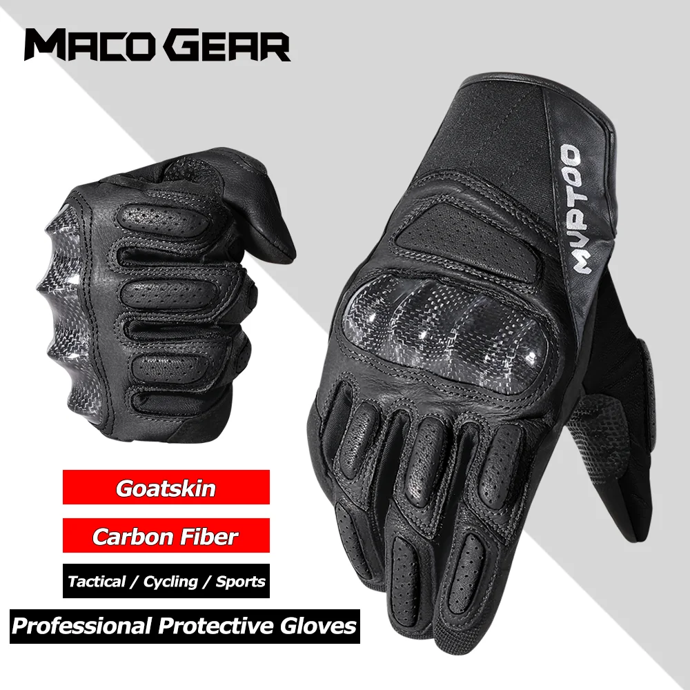 Guantes tácticos de cuero genuino para pantalla táctil, manoplas deportivas de fibra de carbono para senderismo, combate, Airsoft, accesorios para exteriores