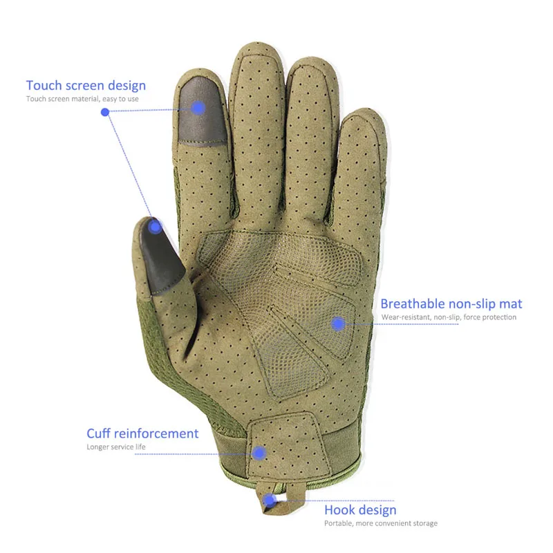 Guantes tácticos de dedo completo para motocicleta, guantes para Paintball, Airsoft, caza, tiro, equitación al aire libre, Fitness, senderismo