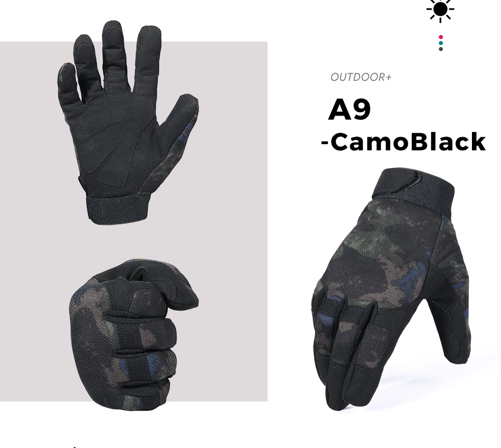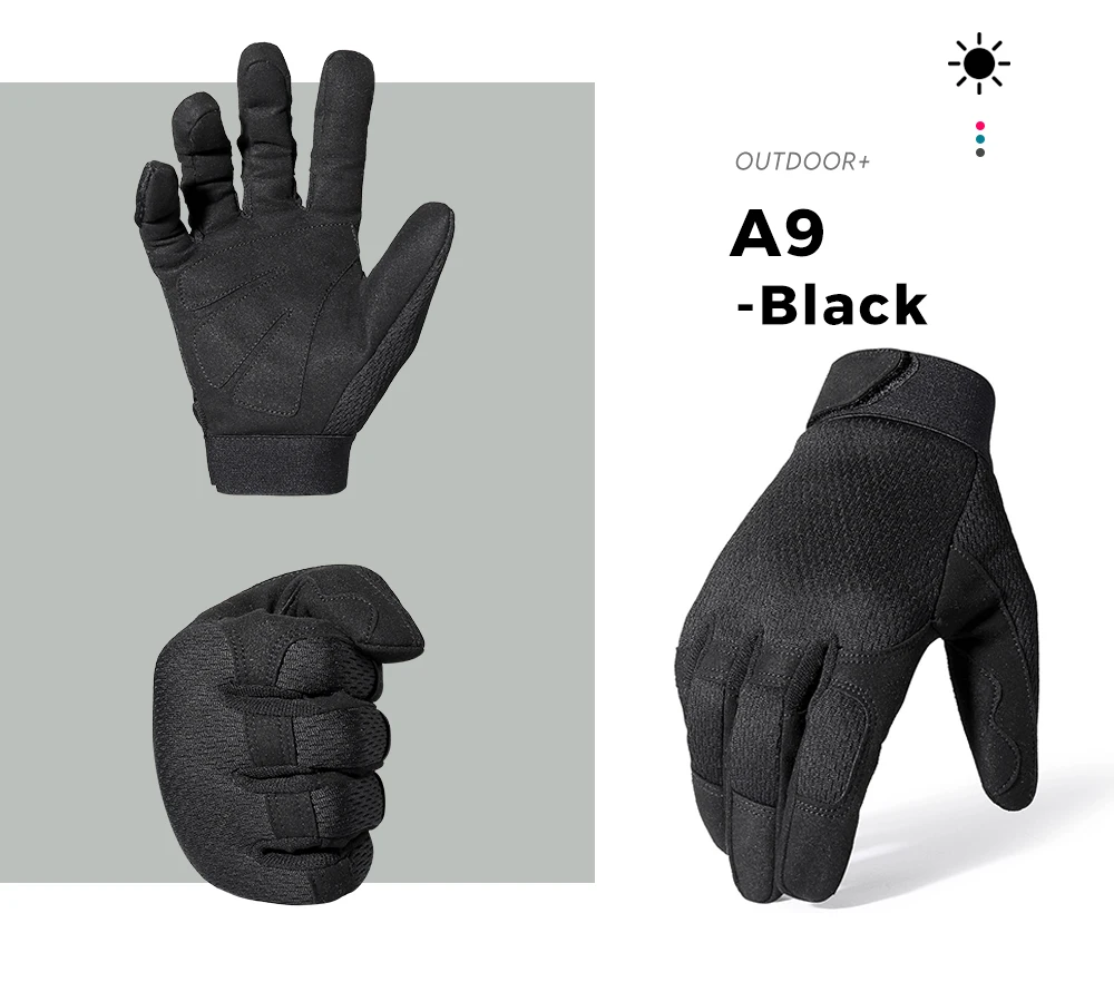 1.Los guantes tácticos están hechos de microfibra duradera y material de nailon elástico transpirable, resistente al desgaste, liviano y de secado rápido.