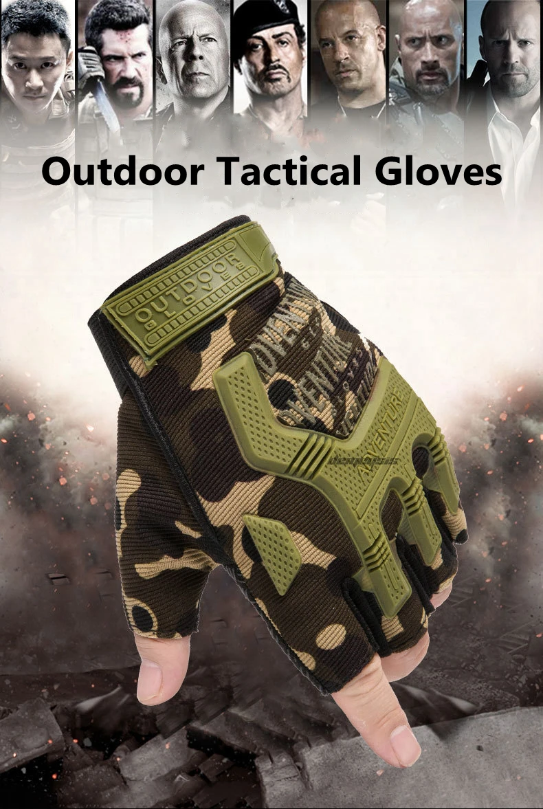 Guantes tácticos de medio dedo para exteriores, antideslizantes, para caza, senderismo, camuflaje, Airsoft, Paintball, guante de combate, hombres y mujeres